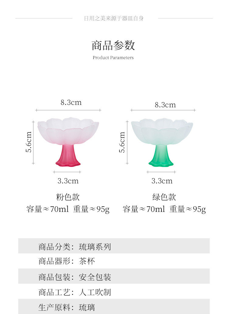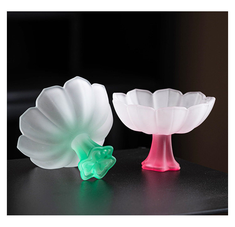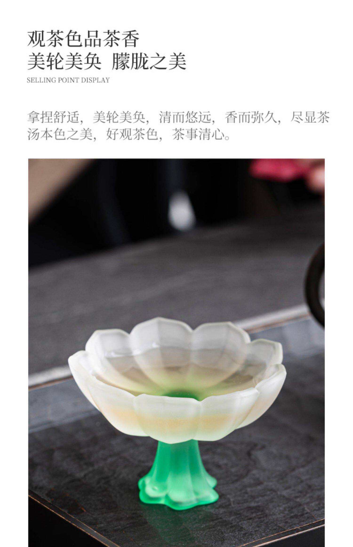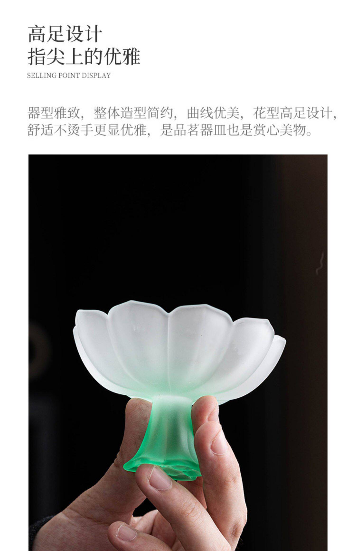 四色【敦煌·琉璃饮莲花杯】创意粉彩四色高足杯 磨砂玻璃茶杯 氛围感轻奢高颜值