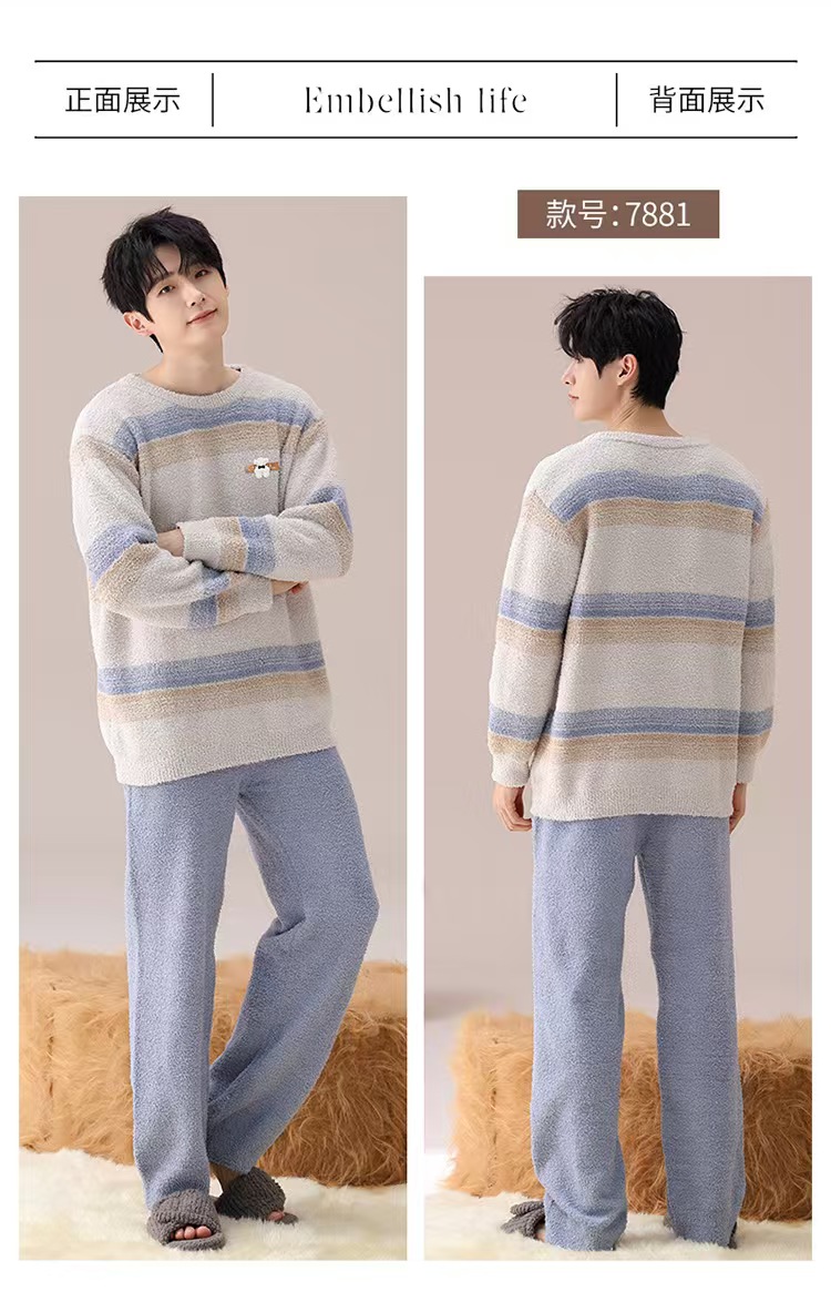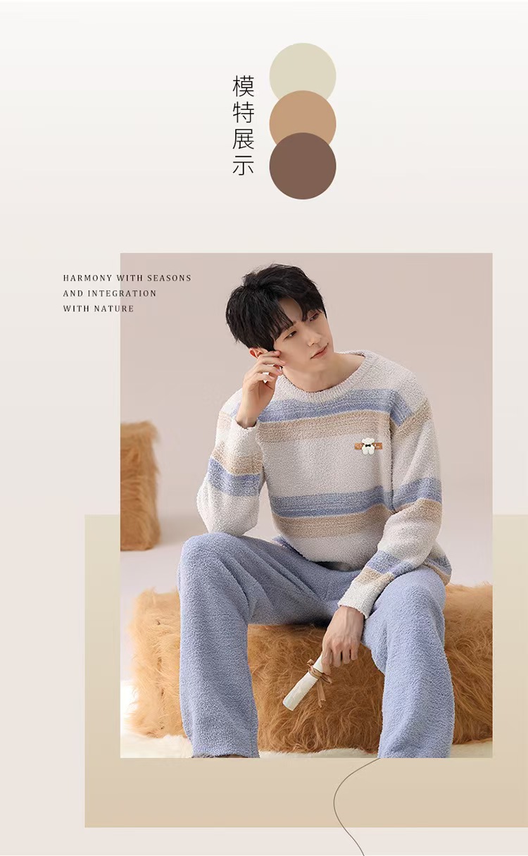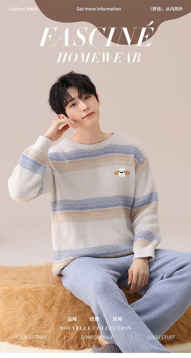 【暖男】半边绒睡衣男士冬季加厚加绒珊瑚绒秋冬款2025新款保暖家居服