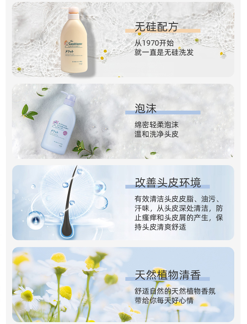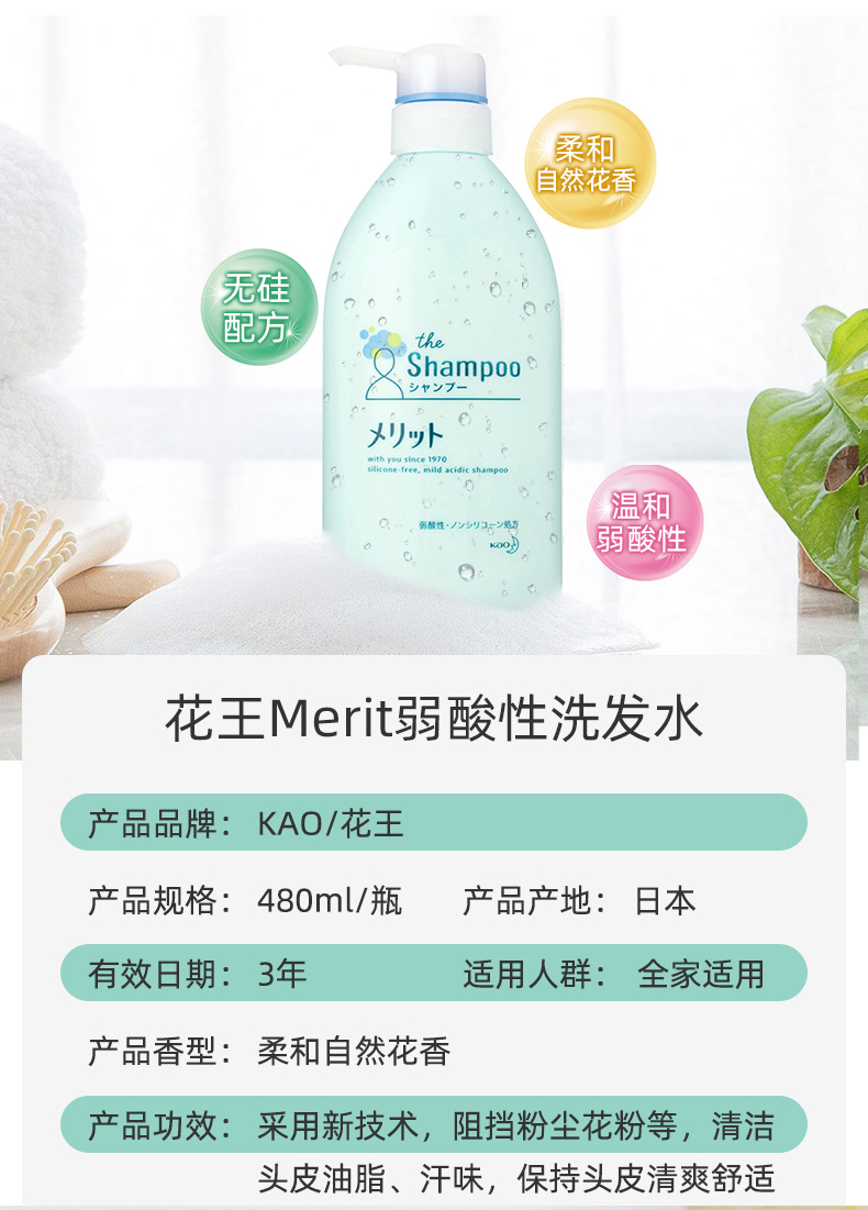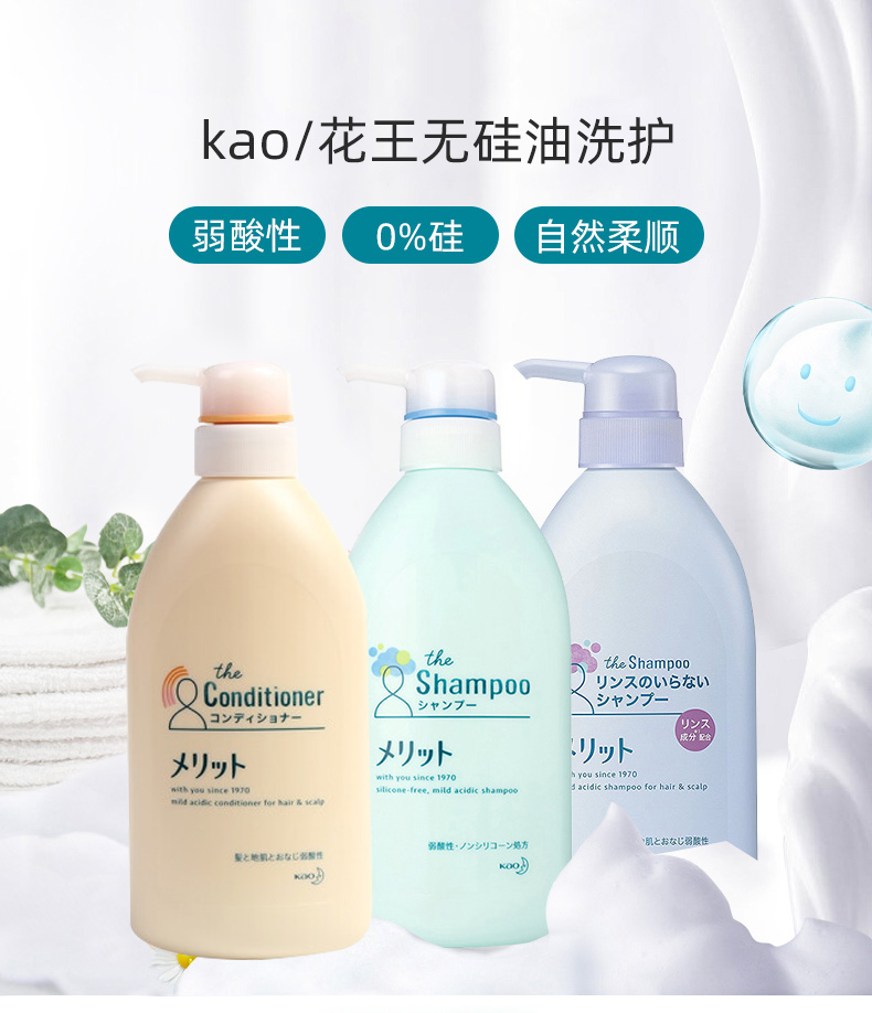 【保税仓】日本kao/花王merit国民系列无硅油弱酸性护发素480ml/瓶