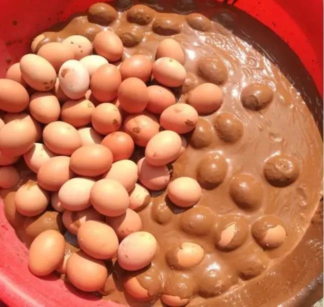 🔺搅拌成泥浆状的腌泥并均匀包裹于鸡蛋表面