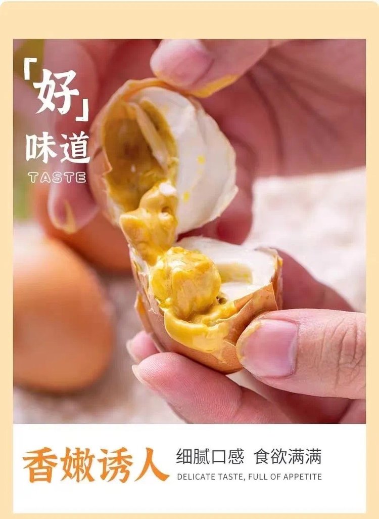 注意:纯手工腌制会出现蛋白颜色不均匀,或者蛋黄不出油情况,属于正常情况。不影响口感。