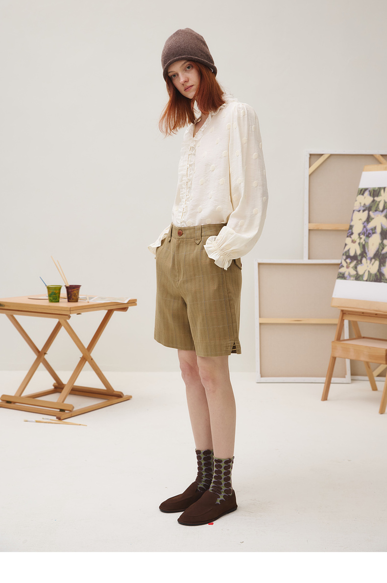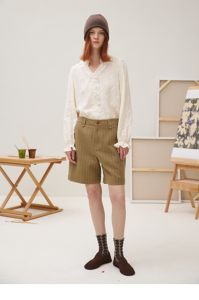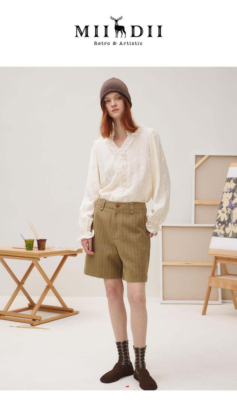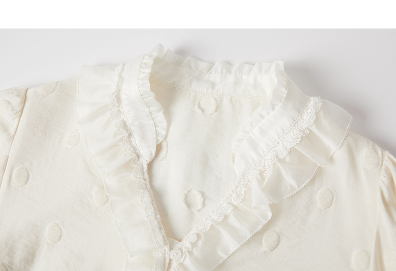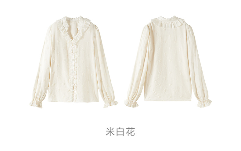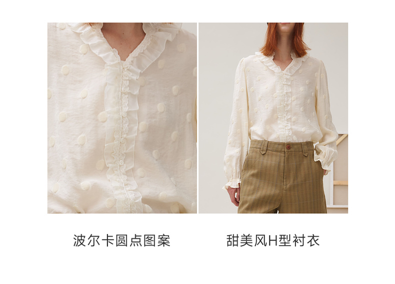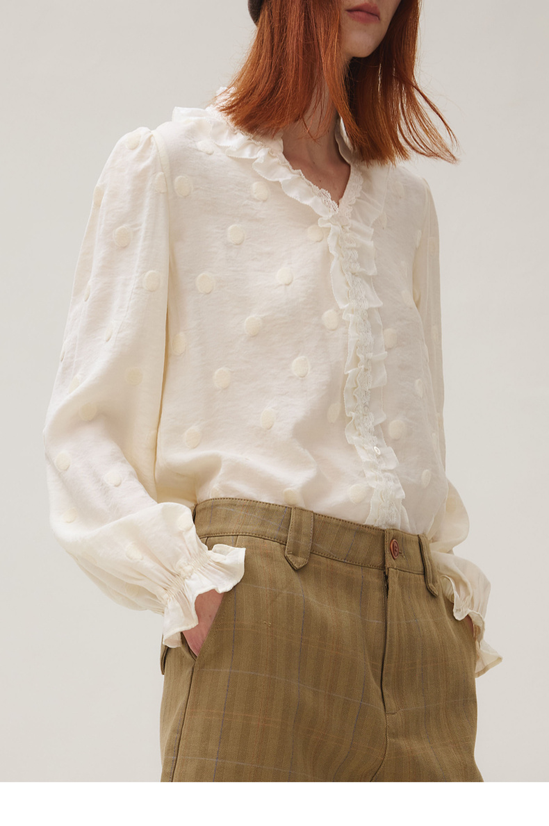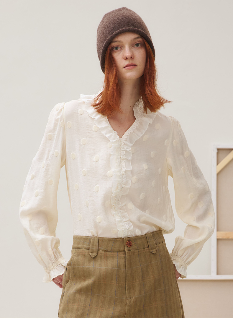 谜底衬衣长袖女2025秋季新品通勤风时尚波点V领花边衬衫253MC1264
