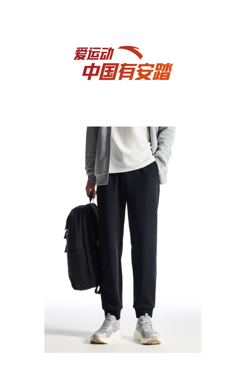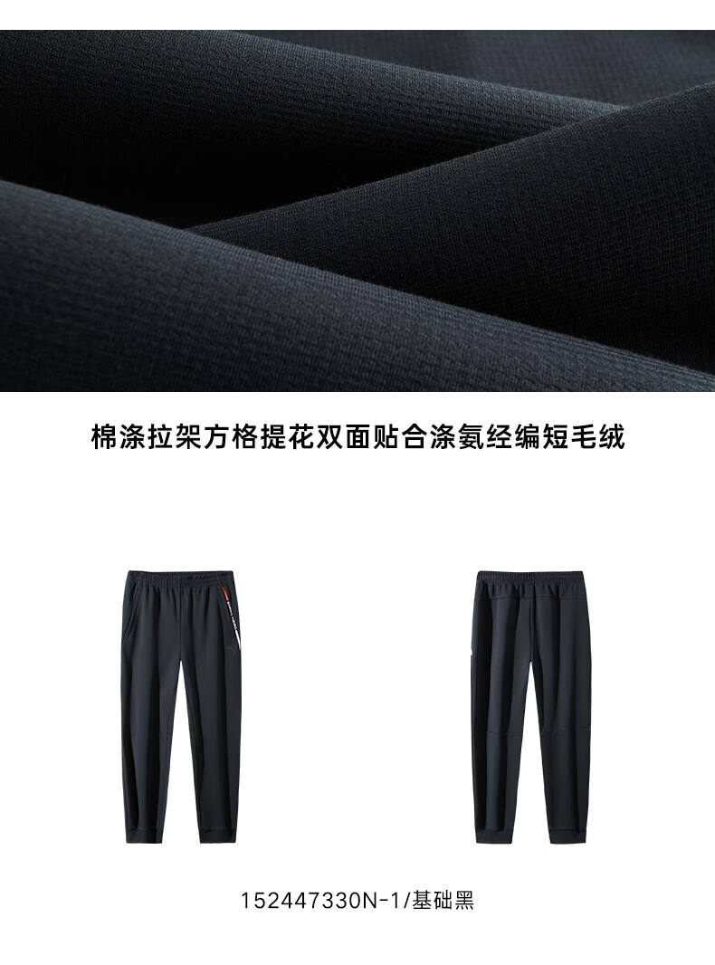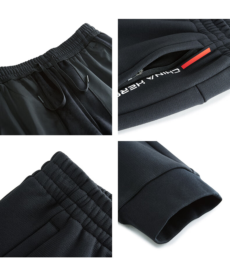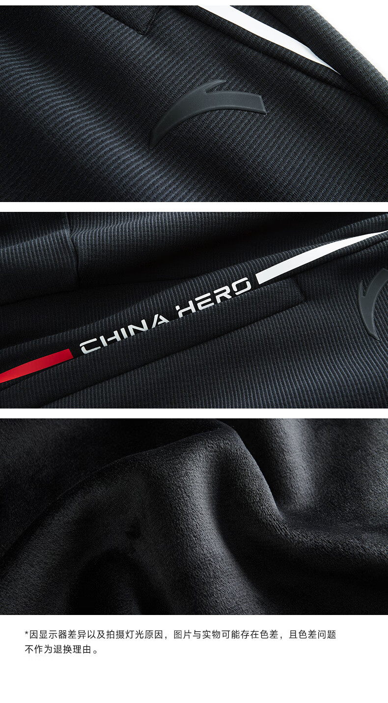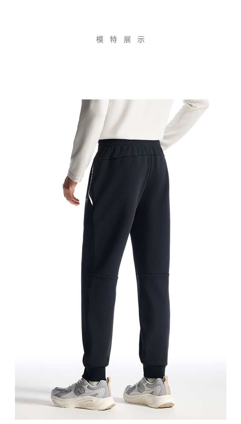 安踏运动卫裤男冬季新款加绒保暖黑色运动长裤束脚裤子152447330N