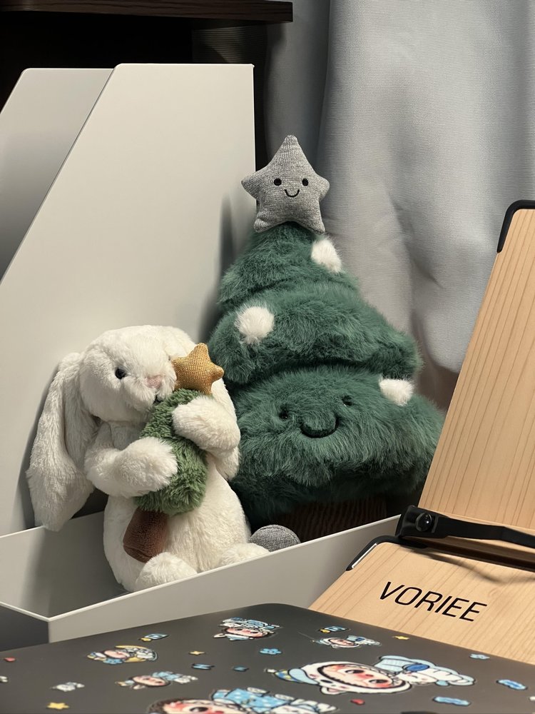 树枝部分蓬松软毛摸起来像踩进云端,点缀的小白点是雪落的痕迹,头顶的微笑星星更是把可爱值拉满🈵简直被萌晕了😊