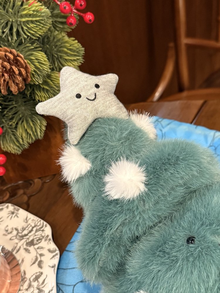 连树顶的星星都带着笑脸,连脚脚都是亮晶晶的毛绒质感一整个把圣诞氛围揣进怀里~