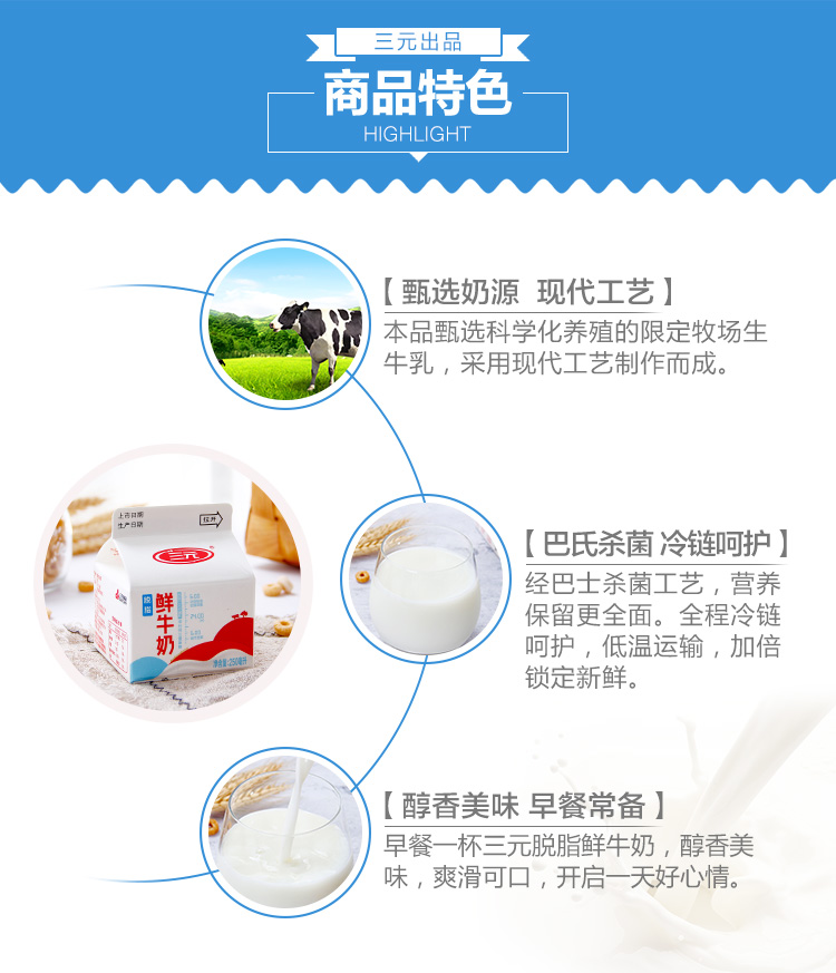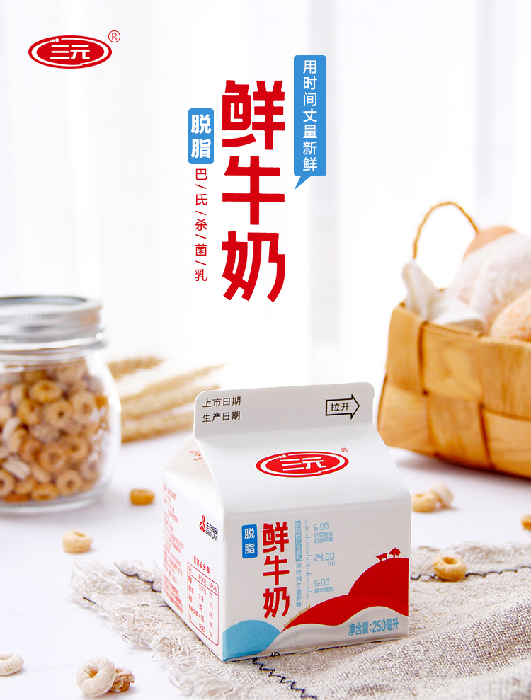 【自提-低温】屋装脱脂鲜牛奶250ml*3
