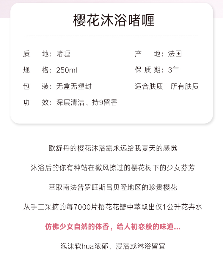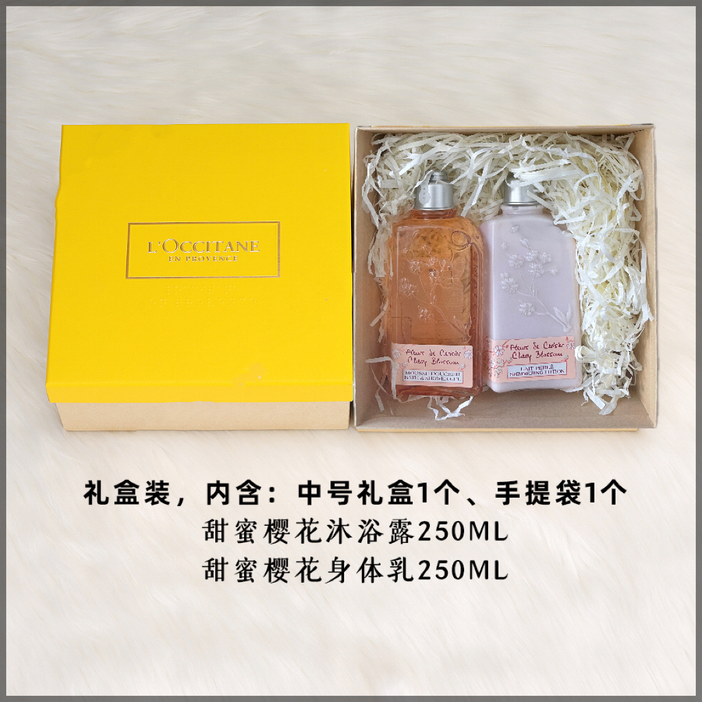 欧舒丹白樱花沐浴露身体乳套装(250ml+250ml)新旧包装随机发 礼盒礼袋