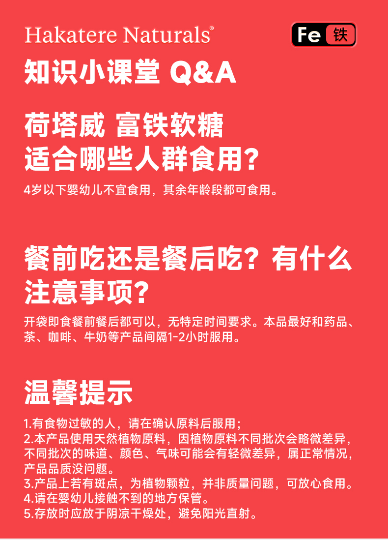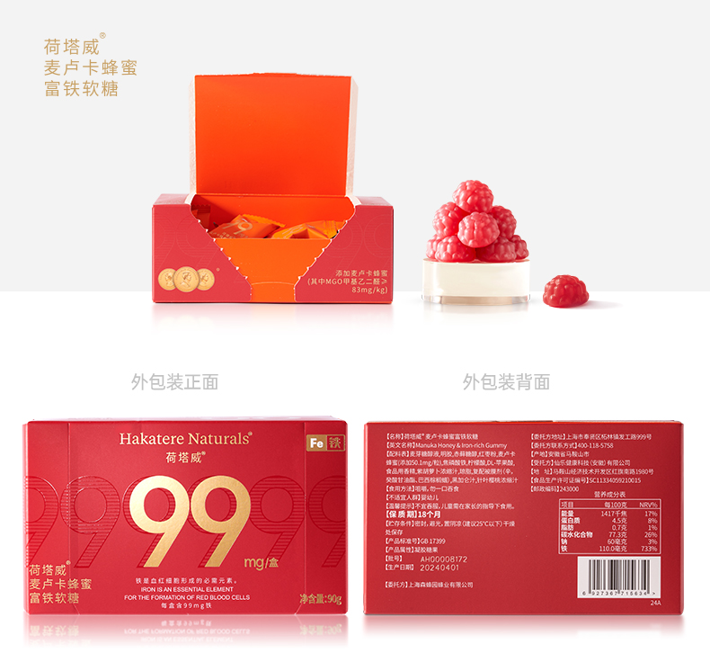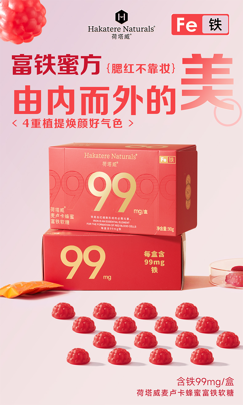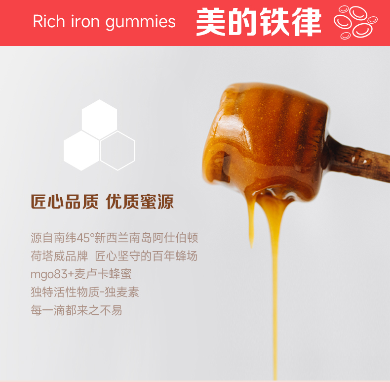 荷塔威麦卢卡蜂蜜富铁软糖 含铁99mg/盒 独立包装 Q弹软糯 老少皆宜
