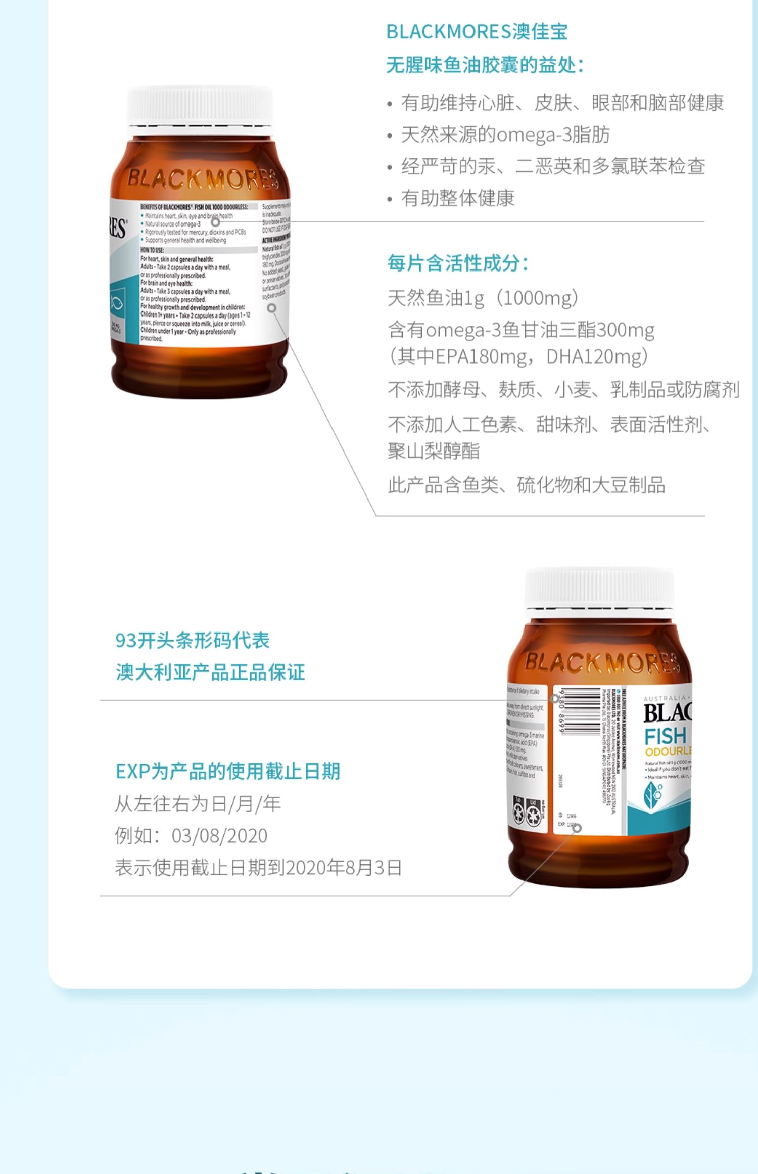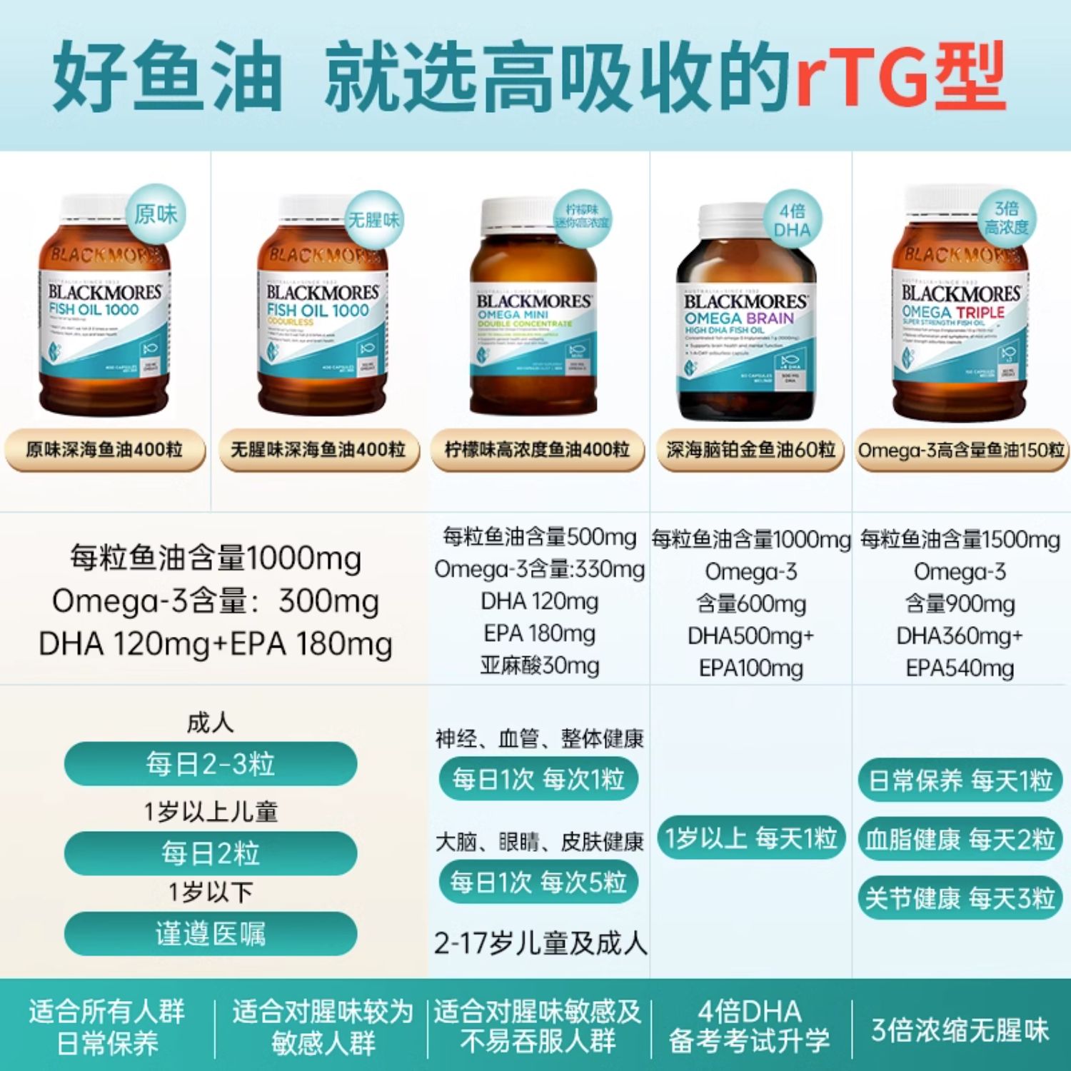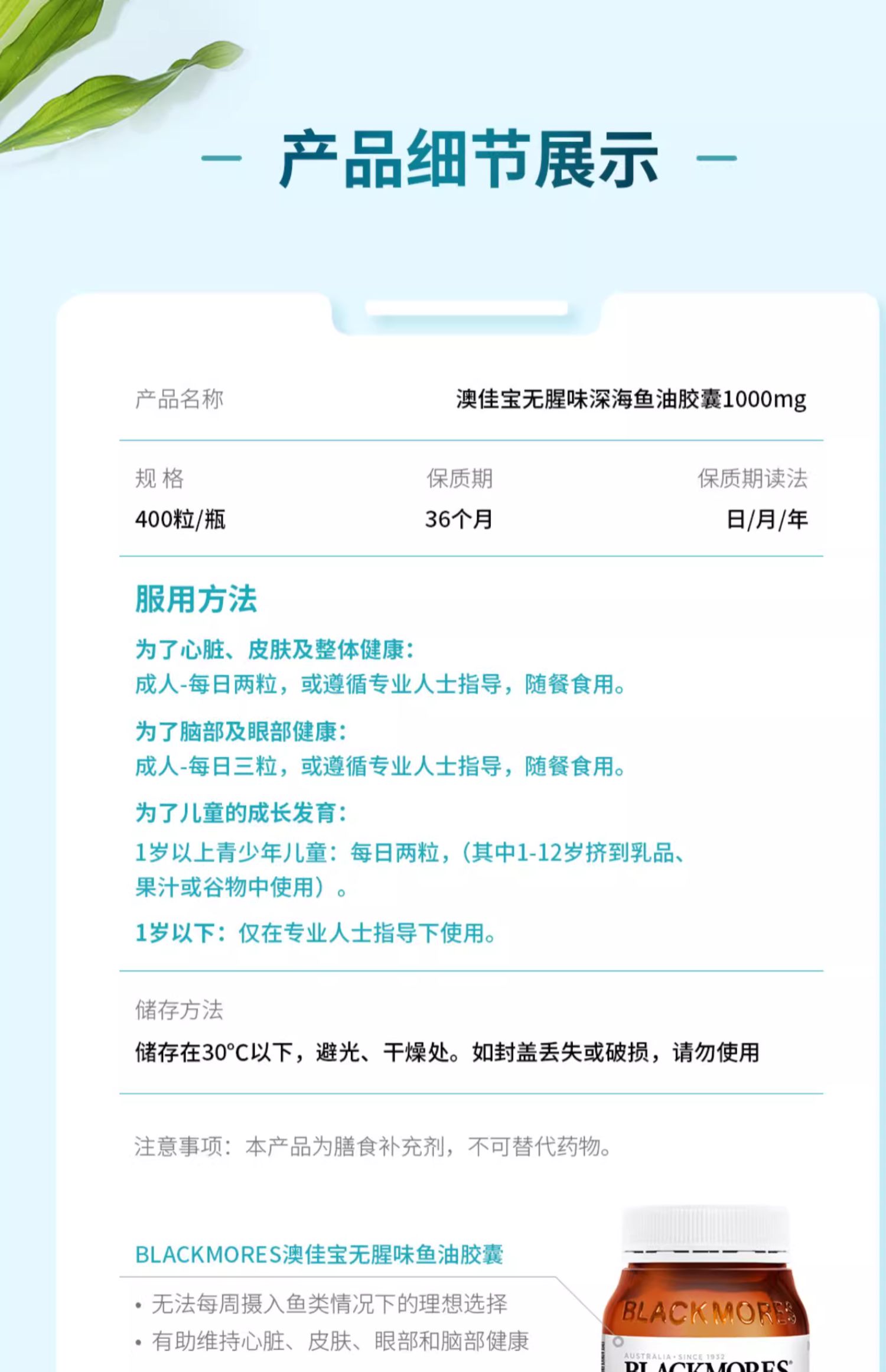 Blackmores澳佳宝鱼油胶囊 养护心脑 1000mg 400粒