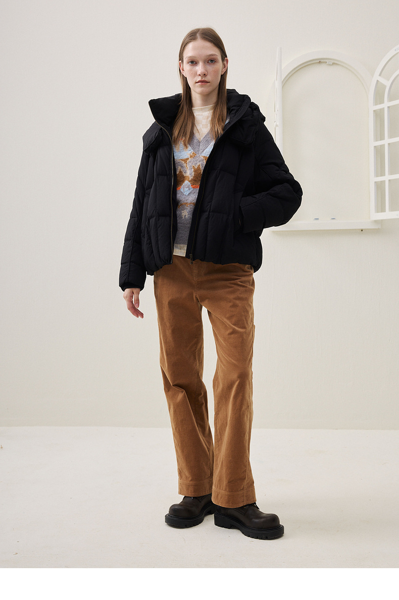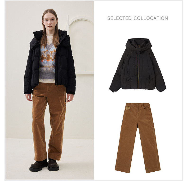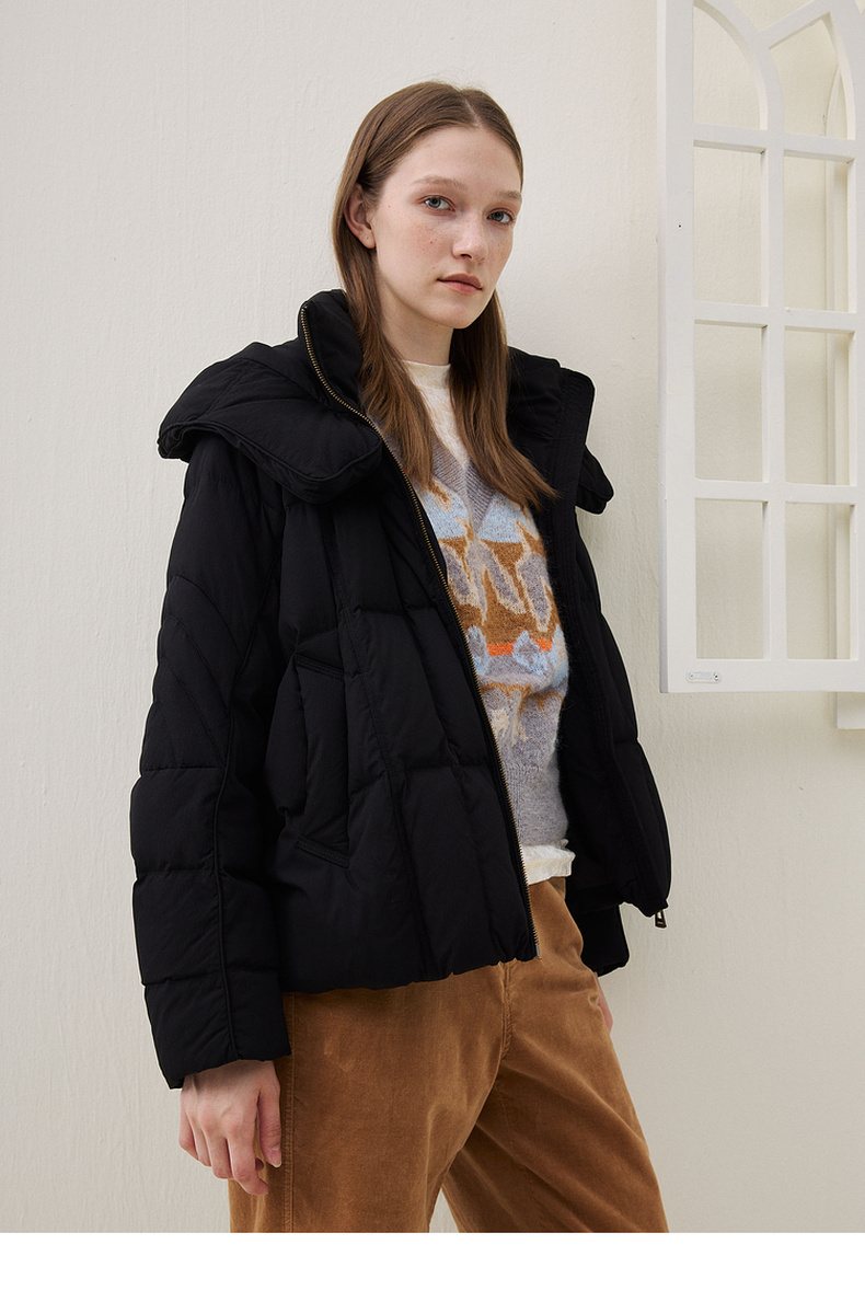 谜底设计感羽绒服女士2025年冬季新品鹅绒宽松连帽短款254MY1616