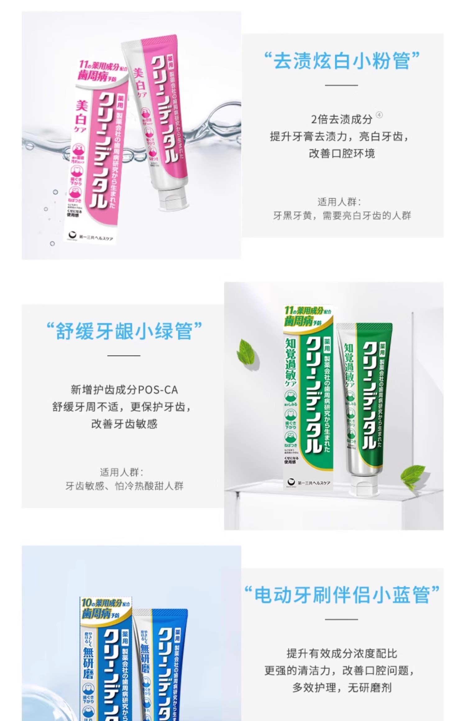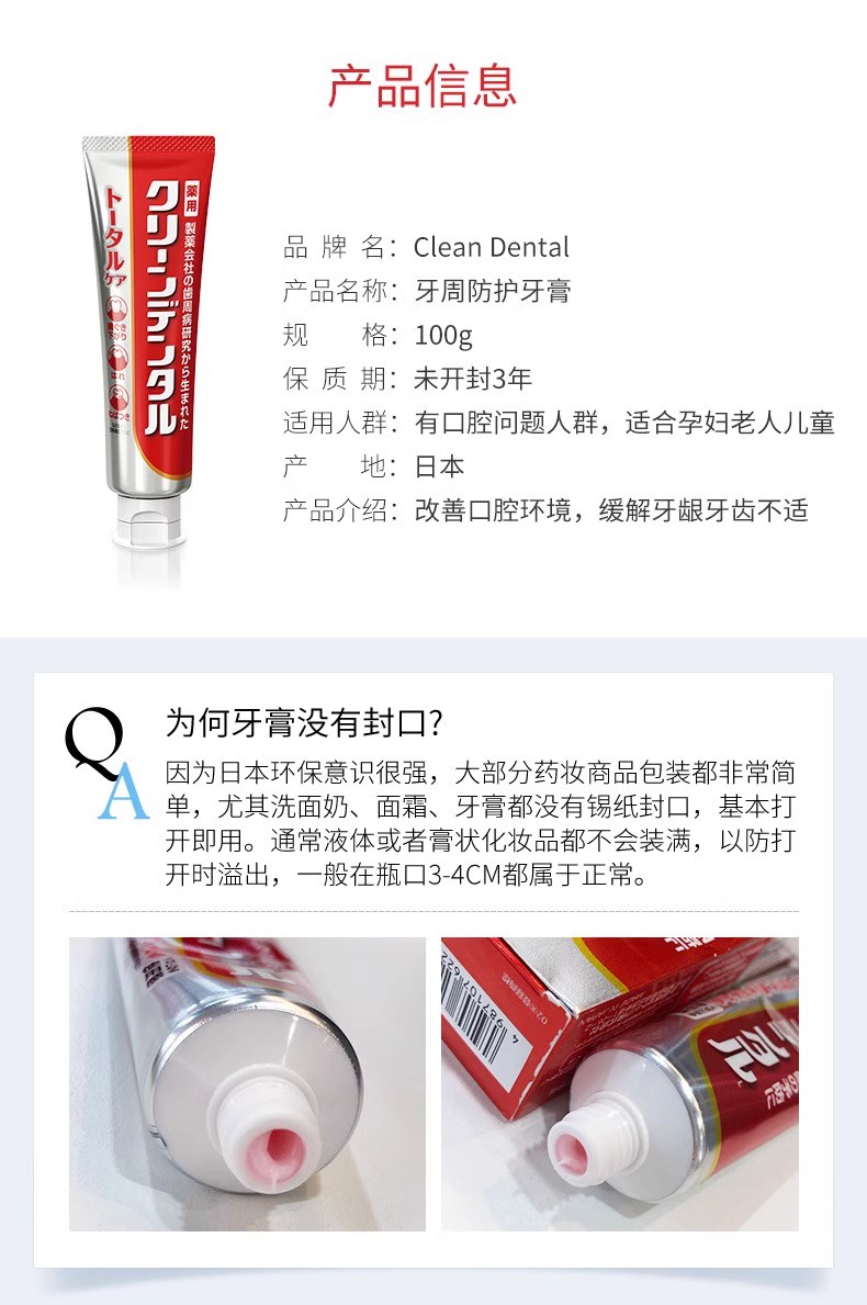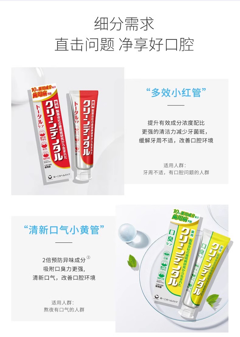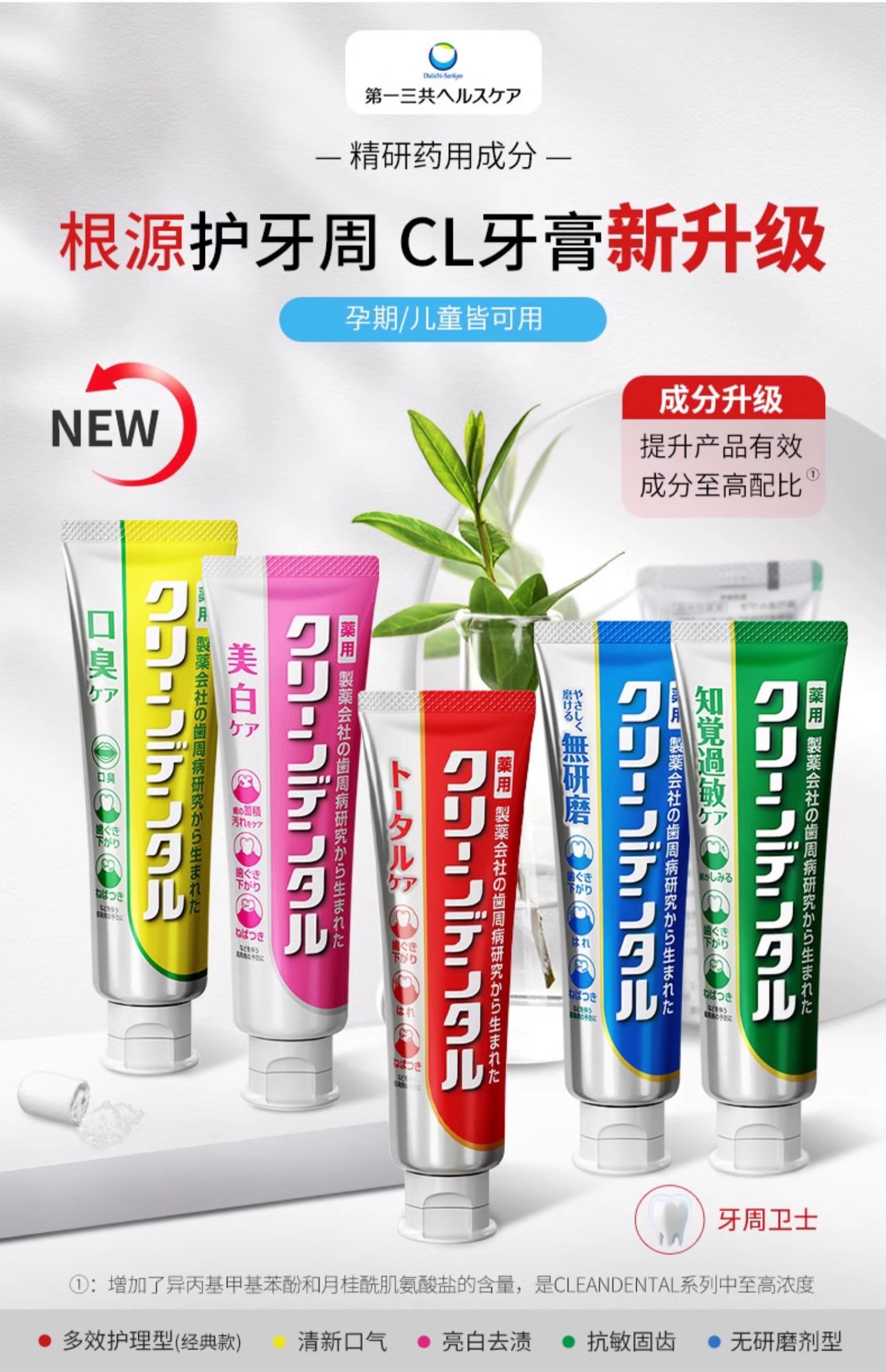 【保税仓】Clean dental/第一三共清洁口腔蓝管牙膏不含研磨剂90g/红管牙膏全效护理型100g
