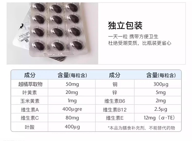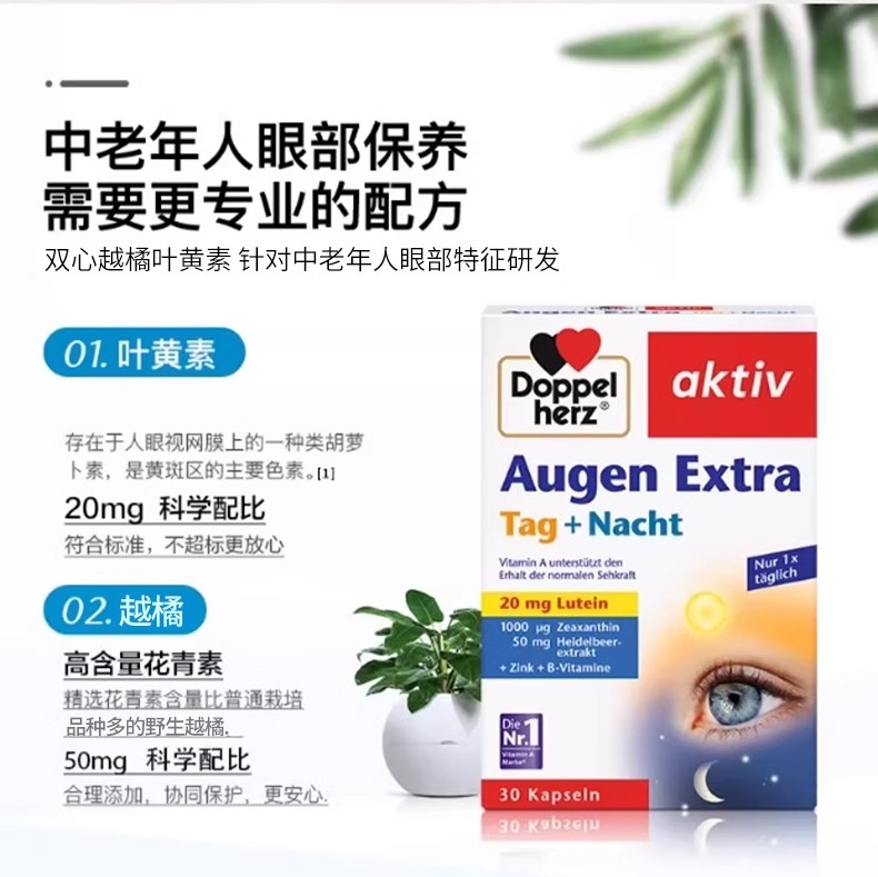 【保税仓】德国Doppelherz双心蓝莓叶黄素胶囊30粒