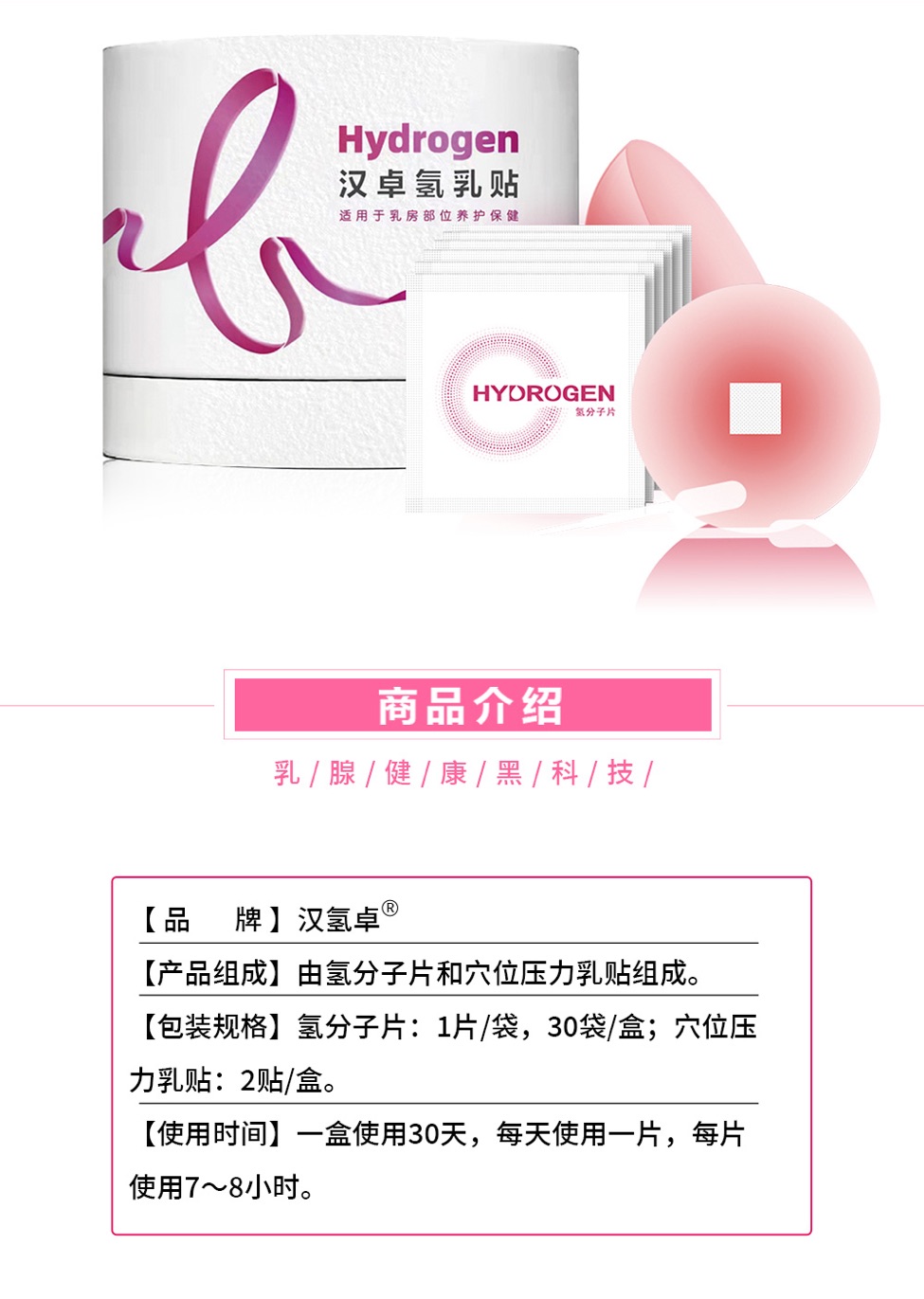 汉卓氢乳贴,持续产生数千万兆亿个氢分子