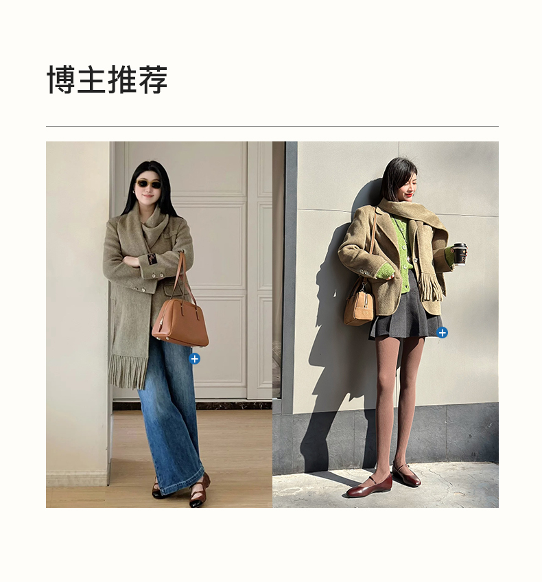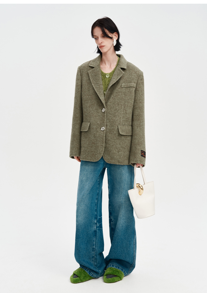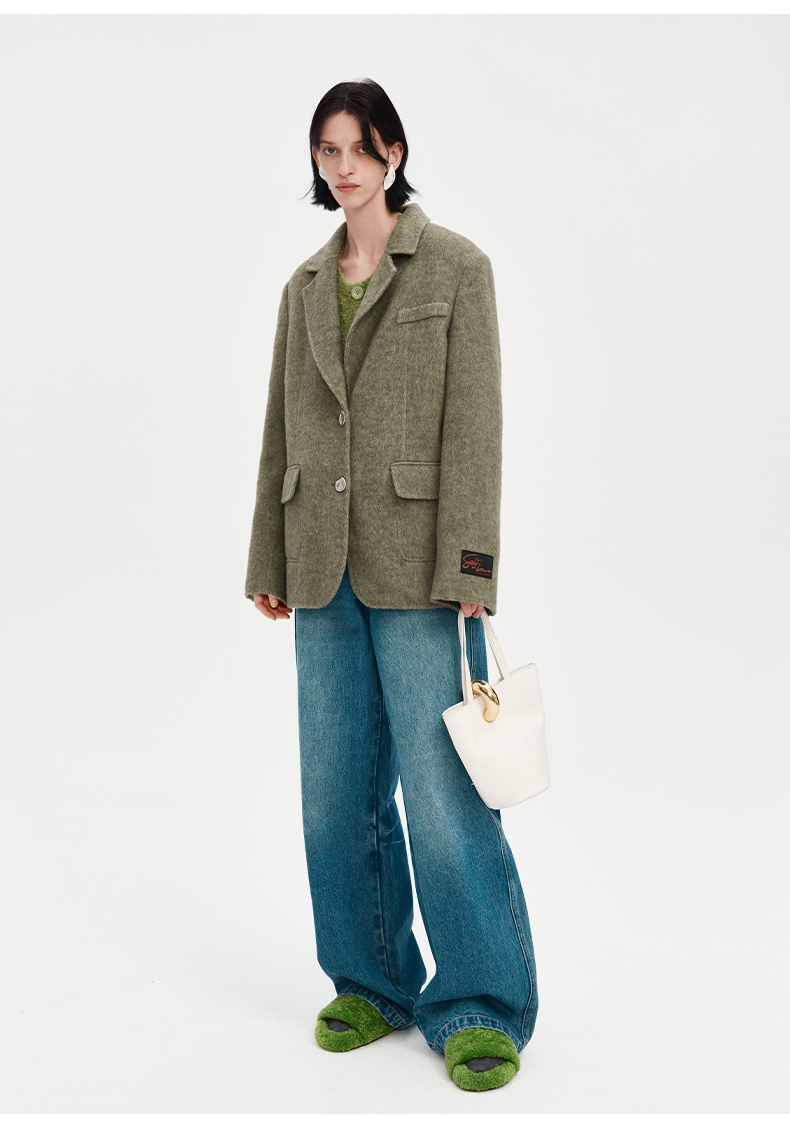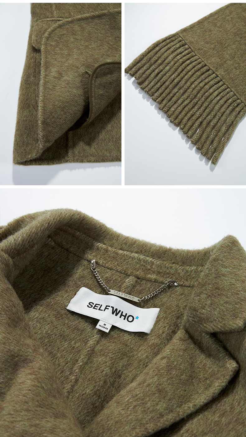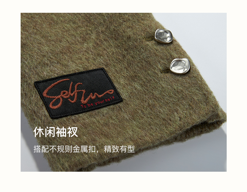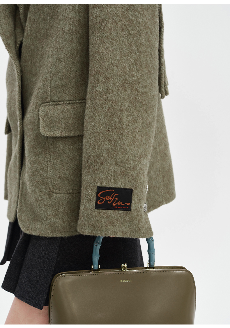 SELFWHO羊毛可拆卸流苏围巾领西装外套女2024冬圣诞气质西服外套
