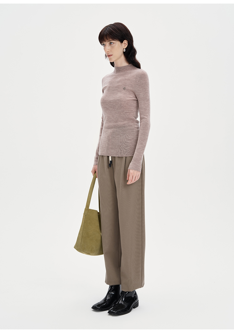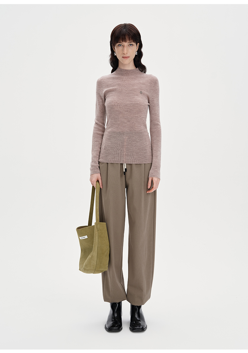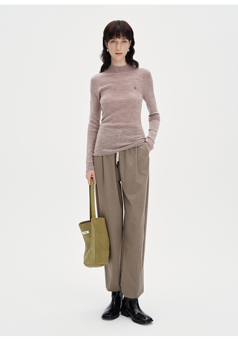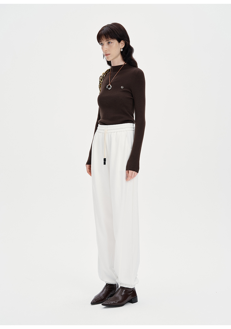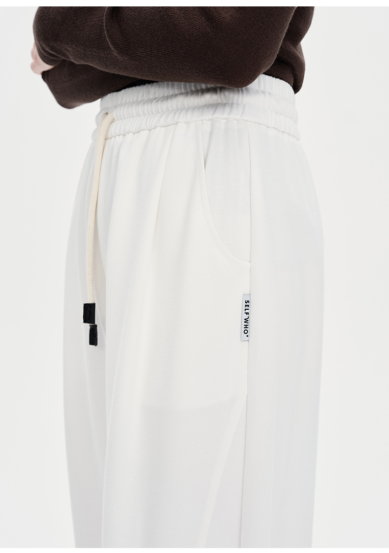 SELFWHO纯色休闲裤女2024秋季新款弹力宽松弹力百搭弯刀裤长裤子