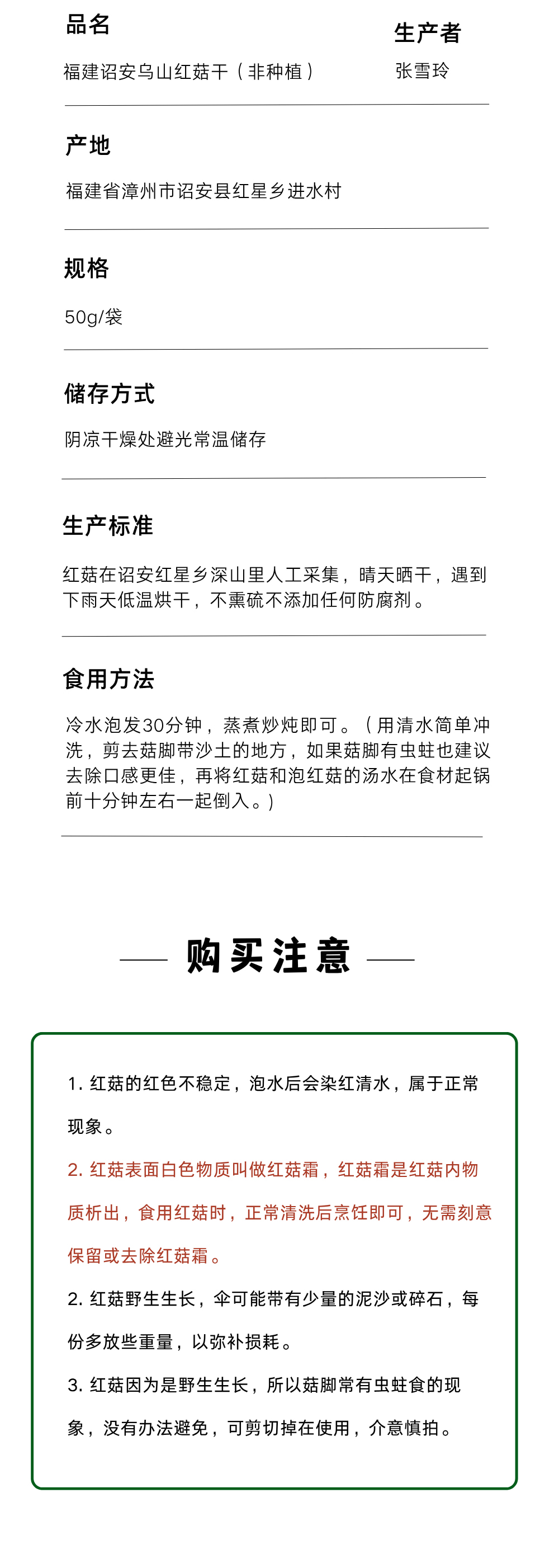 诏安乌山红菇干 深山采集 50g/袋 | 合作农友生产,产自福建诏安,生产者:张雪玲 &【公平贸易农人定价】