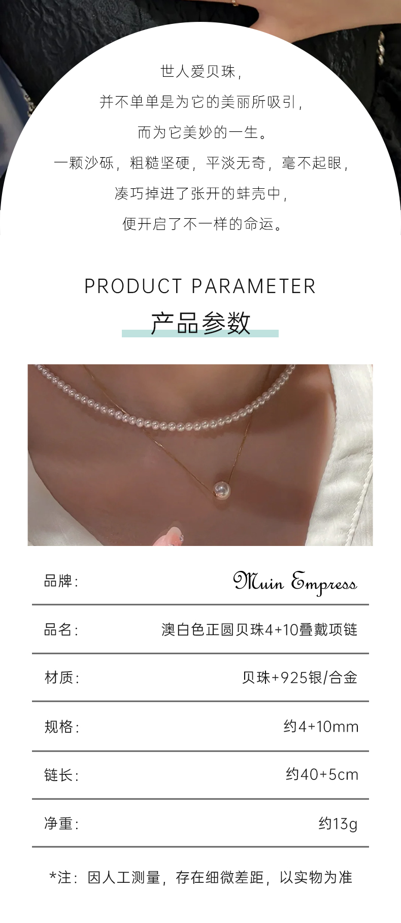 优选丨澳白色正圆贝珠4+10叠戴项链 贝珠4+10mm/重量约13g/长 度约40+5cm