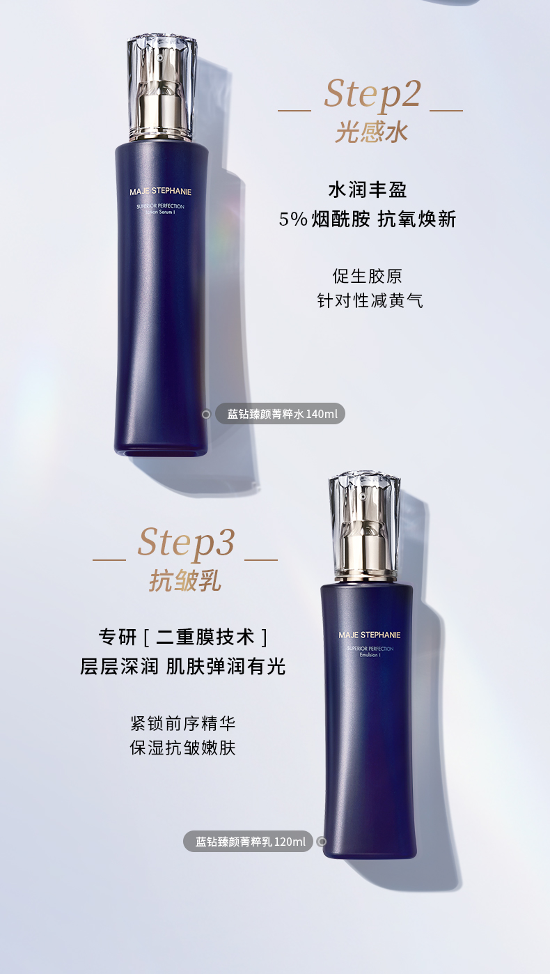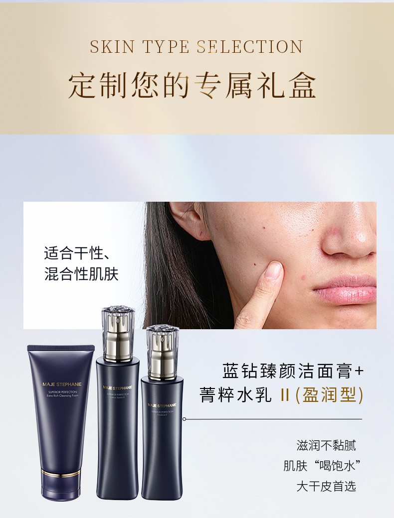 玛嘉思缇 蓝钻臻颜系列光透御龄礼盒(盈润版)洁面120g+蓝钻菁粹水140ml+蓝钻菁粹乳120ml