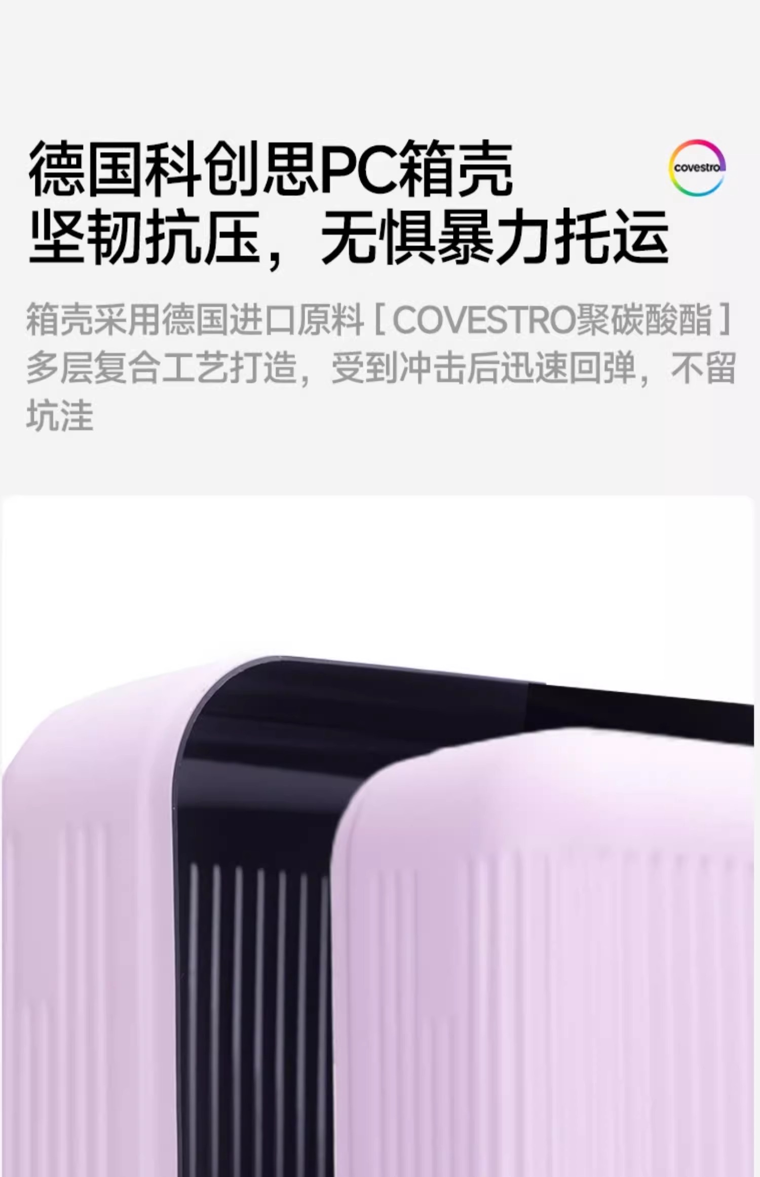 精选高品质航空级PC材质,搭配三层抗压设计,箱体兼具硬度与韧性,抗冲击、防刮耐磨能力拉满