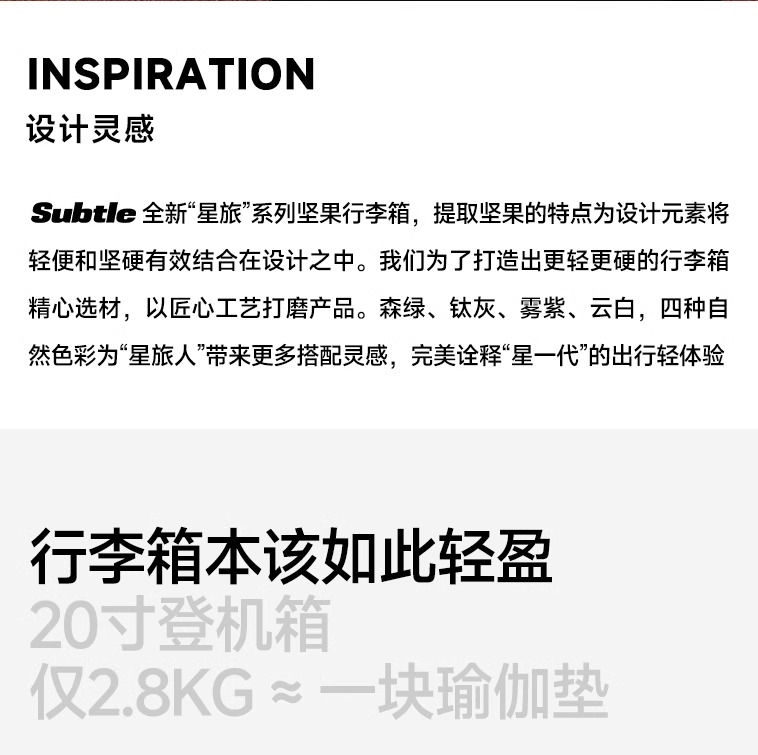 香港轻奢品牌🧳山姆胖东来合作品牌【Subtle坚果行李箱】小贵但质感满分💯一体成型坚果中框,航空级三层PC材质 ✅静音顺滑万向轮+进口轴承