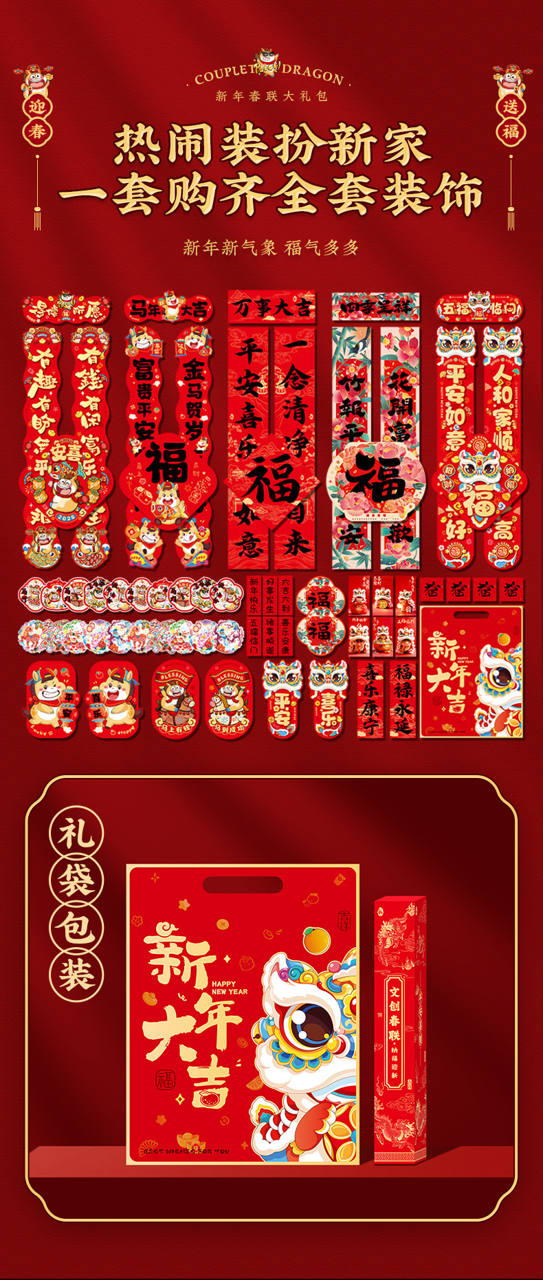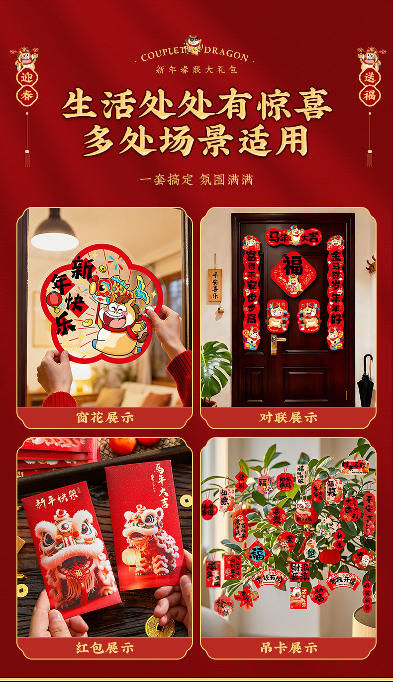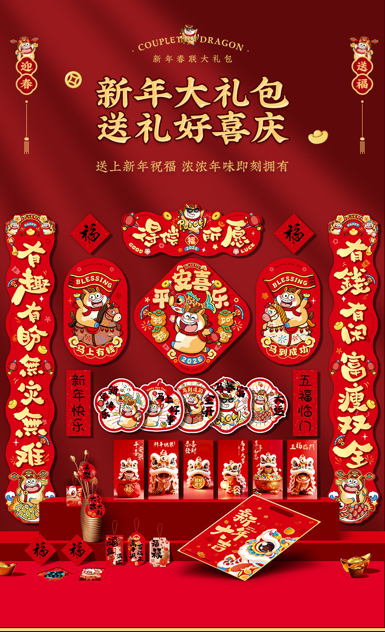 【马年对联春联年货大礼包】春节过年家用福字 大门贴新年装饰 五福临门对联
