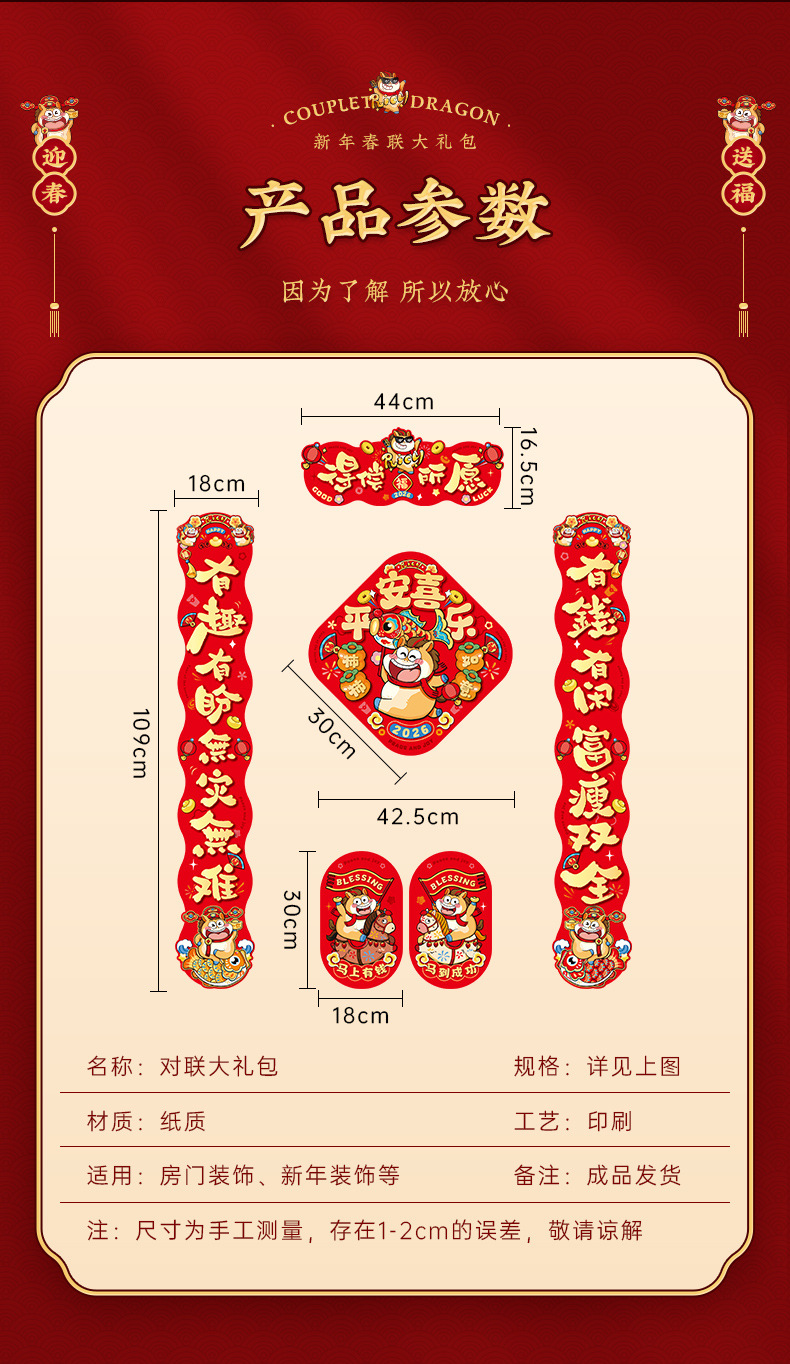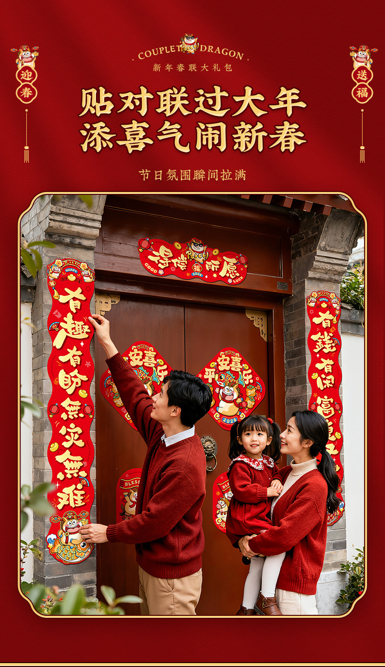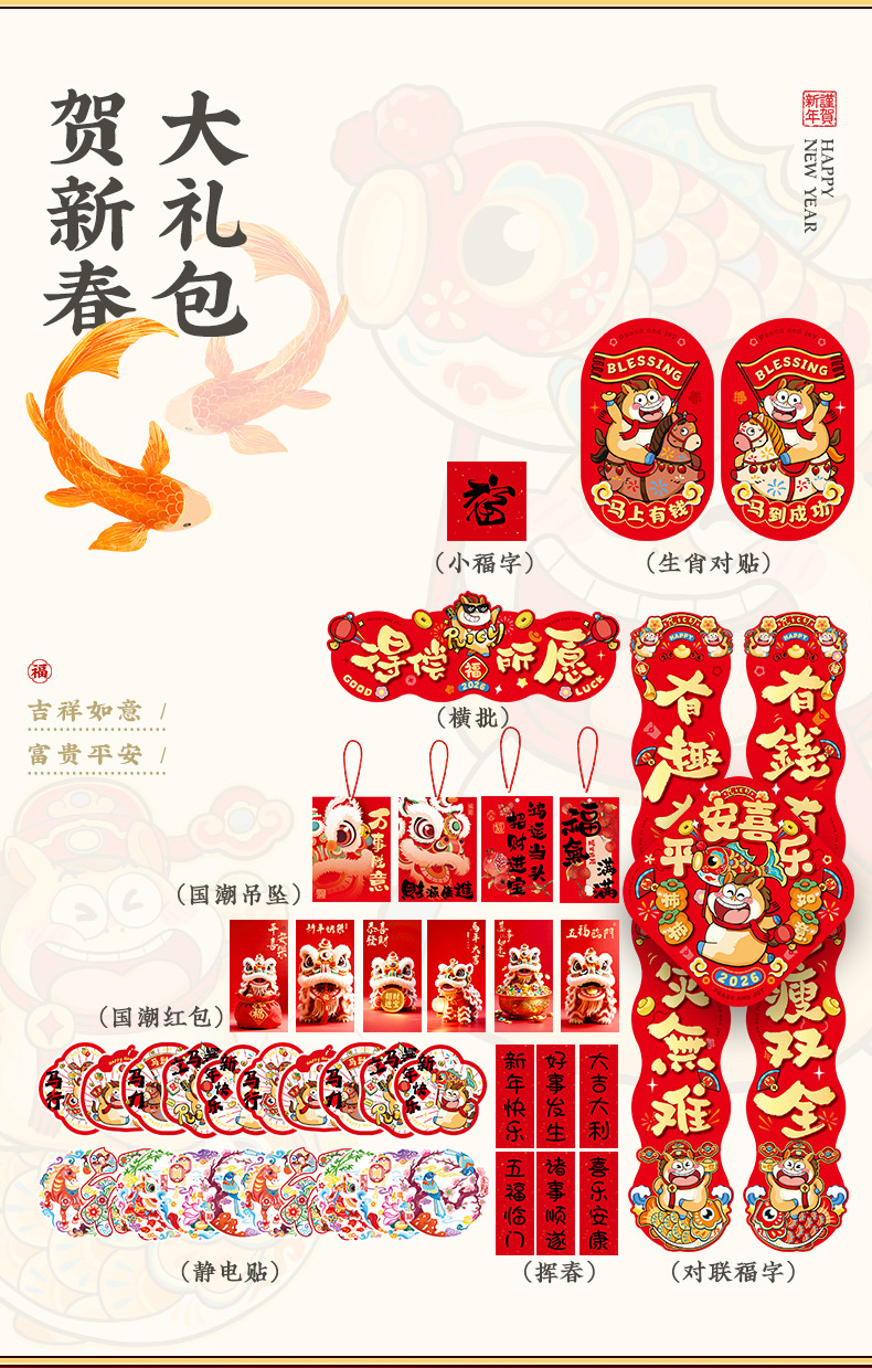 【马年对联春联年货大礼包】春节过年家用福字 大门贴新年装饰 五福临门对联