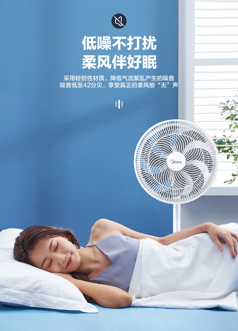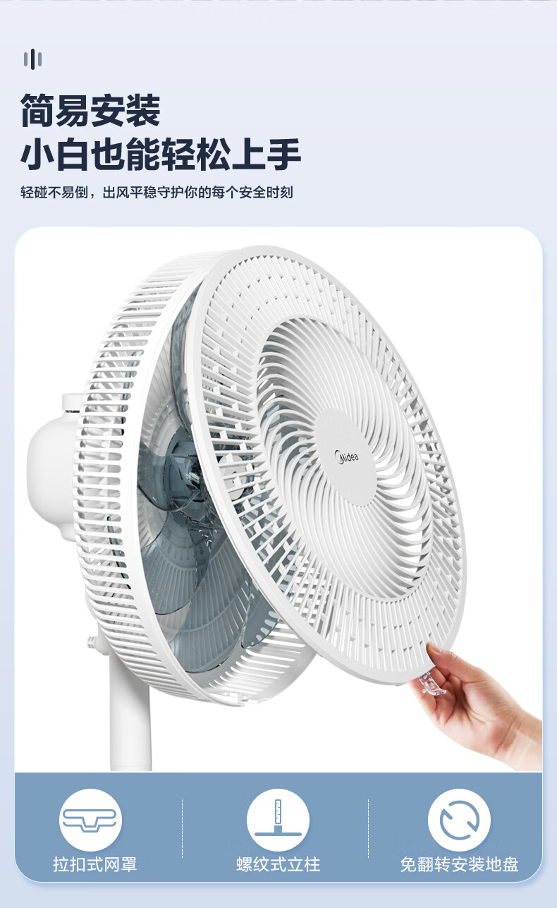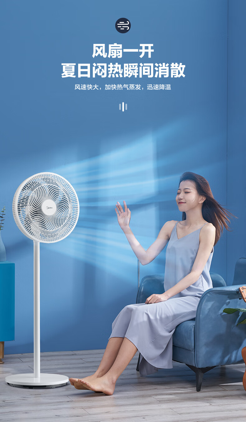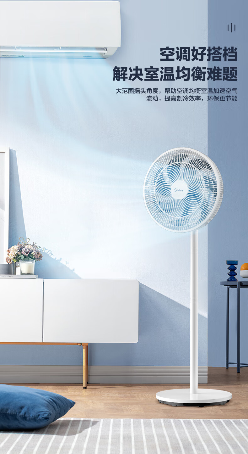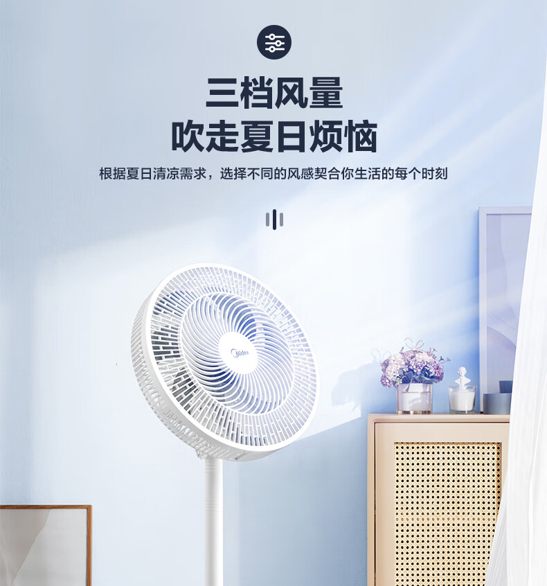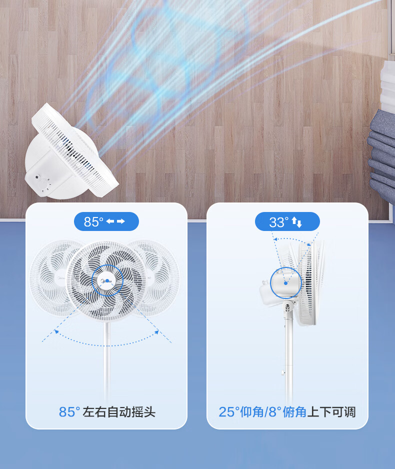 积分免费兑:美的(Midea)【品质推荐】七叶轻音柔风电风扇/家用省电落地扇/台式电扇/广角摇头节能宿舍小型风扇 SAE35CA
