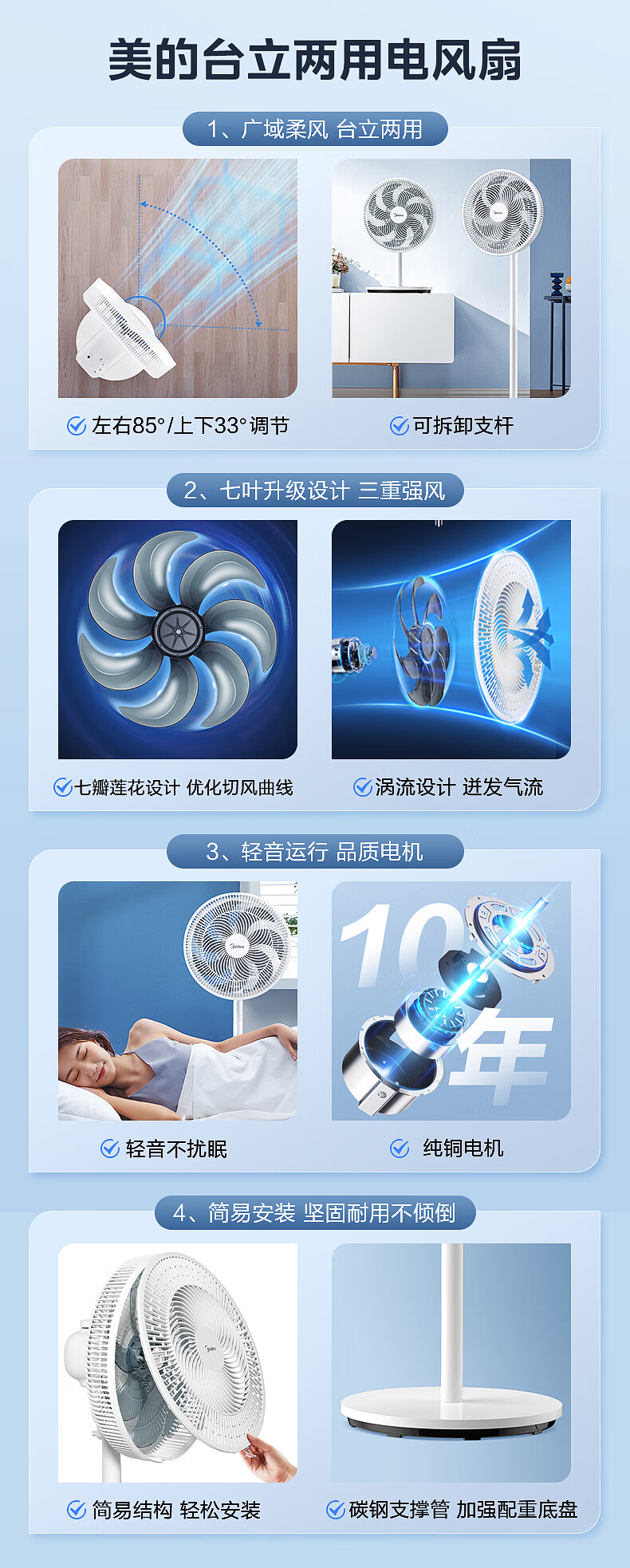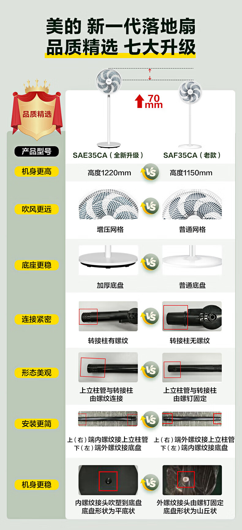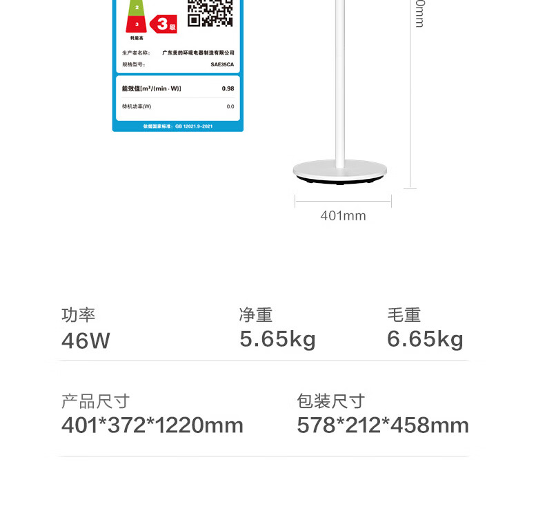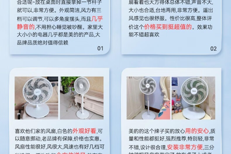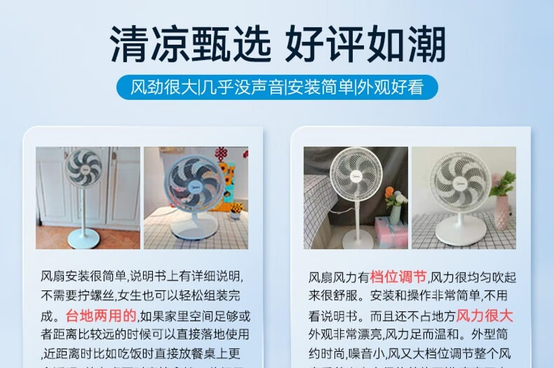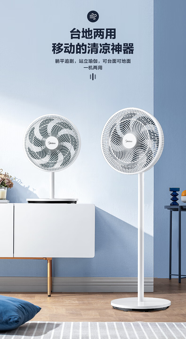 积分免费兑:美的(Midea)【品质推荐】七叶轻音柔风电风扇/家用省电落地扇/台式电扇/广角摇头节能宿舍小型风扇 SAE35CA
