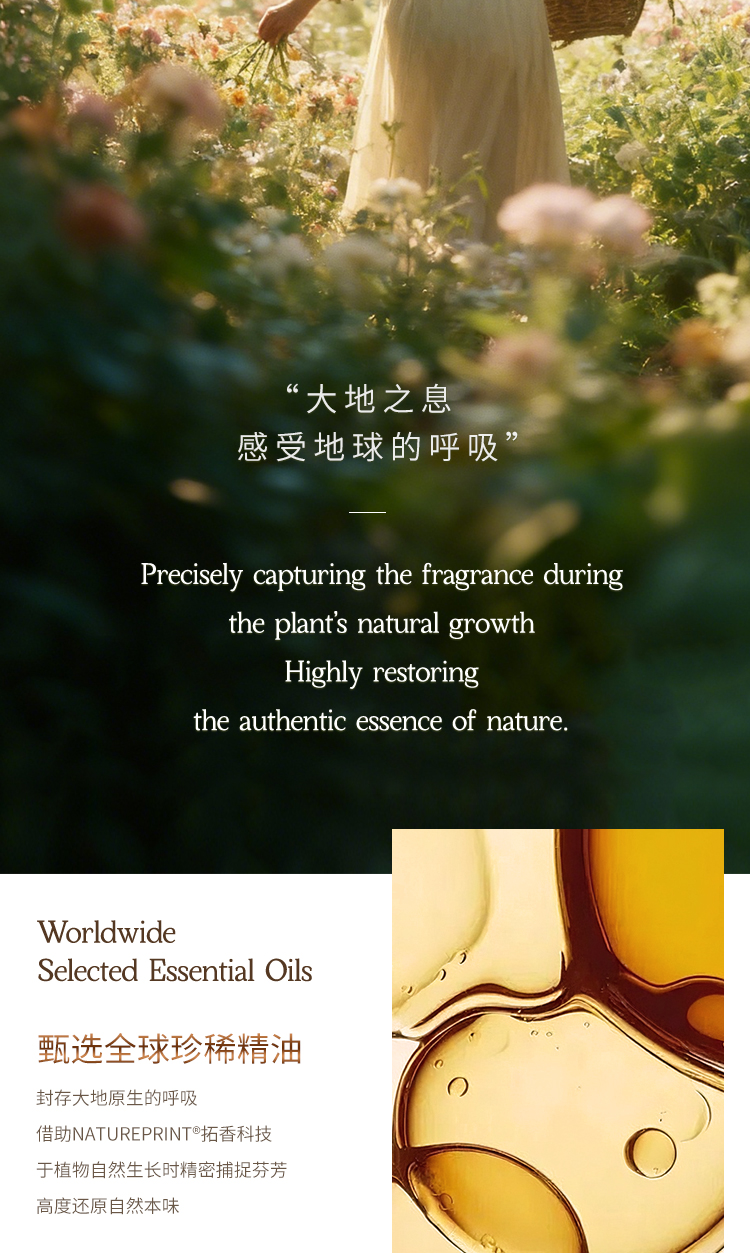 更特别的是它用到的NaturePrint®拓香科技,不是在实验室里模拟香味,而是在植物最鲜活的生长阶段就捕捉芬芳