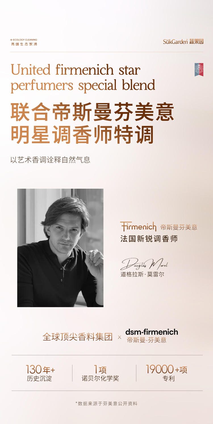 它是蔬果园联合拥有130年历史的帝斯曼芬美意打造的,调香师更是师从“香水金童”Francis Kurkdjian的Douglas Morel——要知道,Francis Kurkdjian可是打造过无数经典香水的大师,能让他的弟子亲自操刀,足见这款香氛的“含金量”