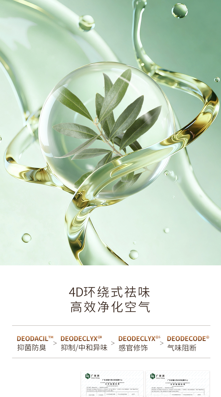 它的4D环绕式祛味技术不是简单的“以香遮臭”,而是用植物祛味成分靶向分解异味分子,还能抑制产生异味的细菌——第三方检测报告显示,它对氨气、硫化氢的去除率都超过了98%