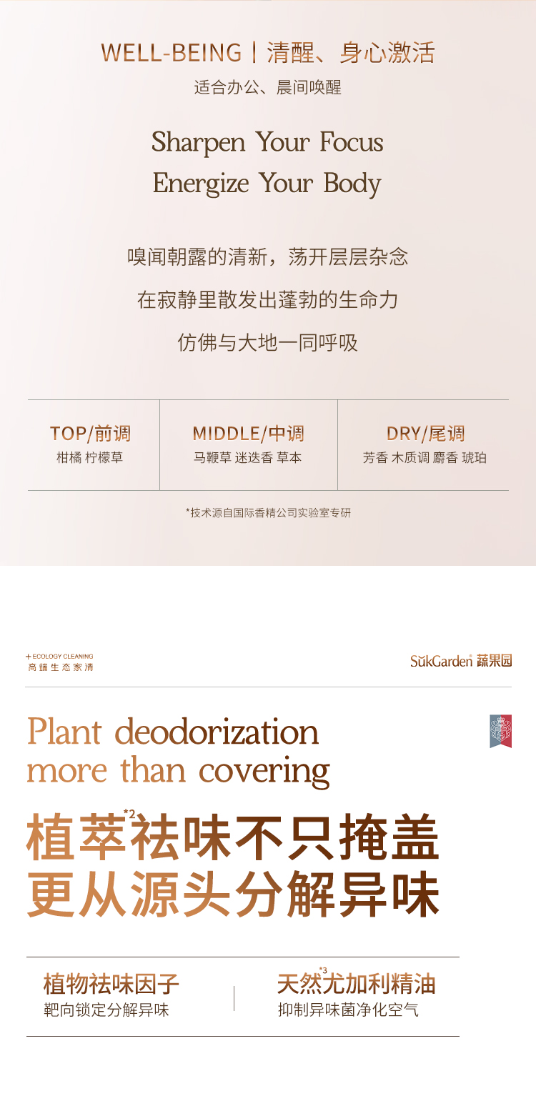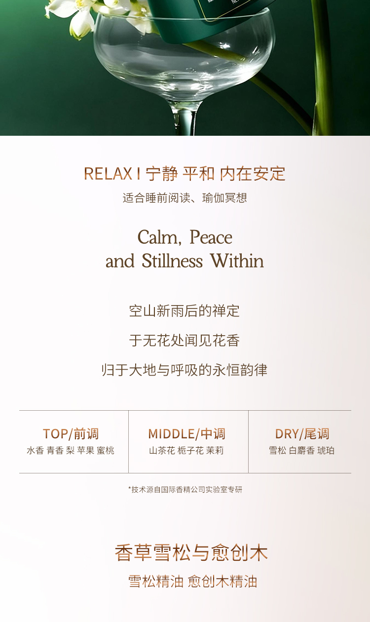 香型:香草雪松与愈创木/突尼斯迷迭香与柠檬草/沙巴茉莉与白檀木