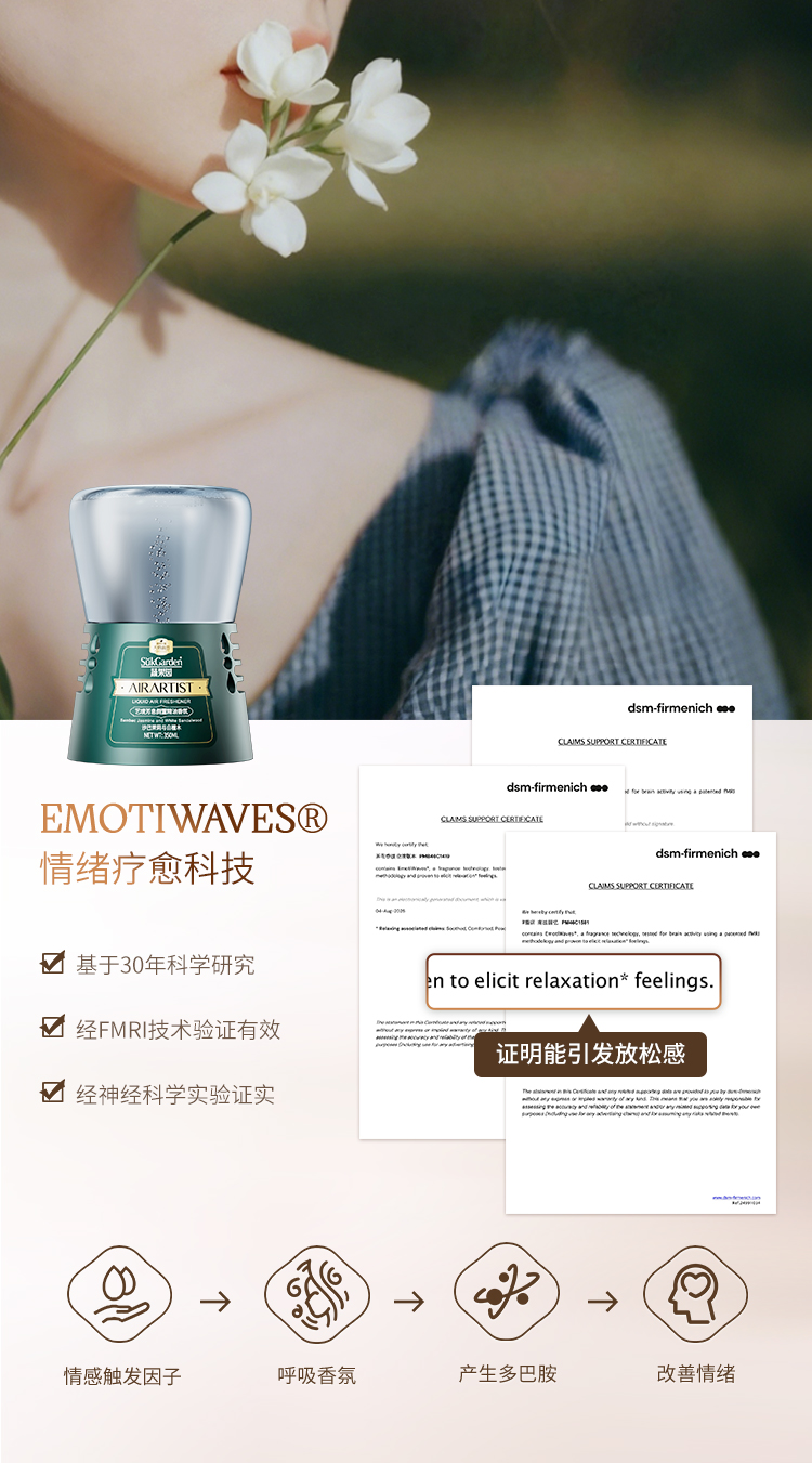 不同于“闻着舒服就行”的模糊感受,它搭载的EmotiWaves®情绪技术,是经过30年研究、用FMRI和神经科学验证过的☑️