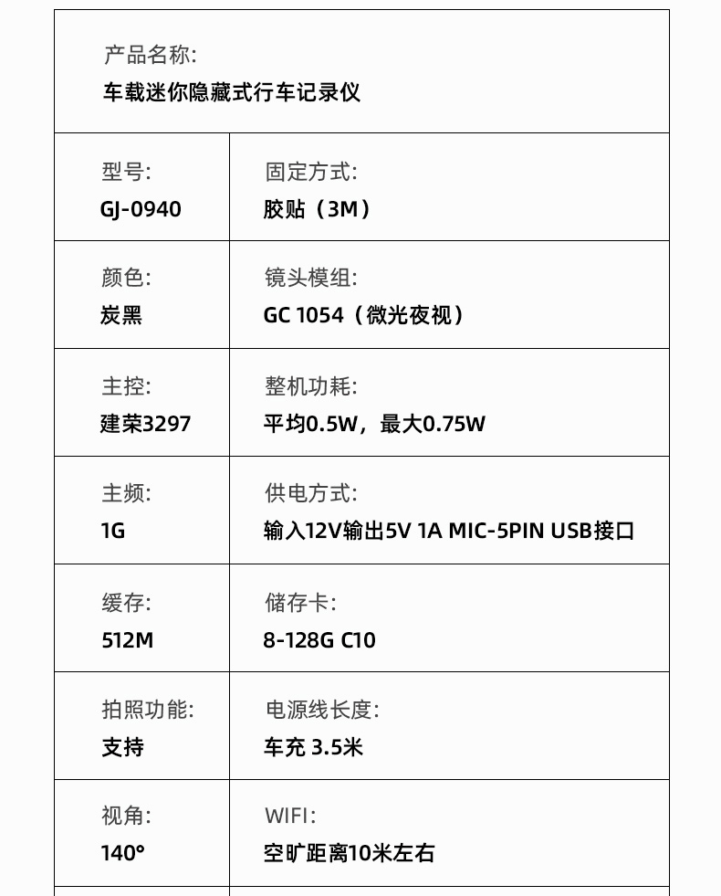 车管家 车载行车记录仪 智能高清广角记录仪 GJ-0940