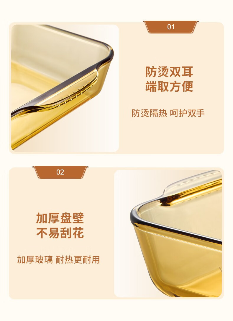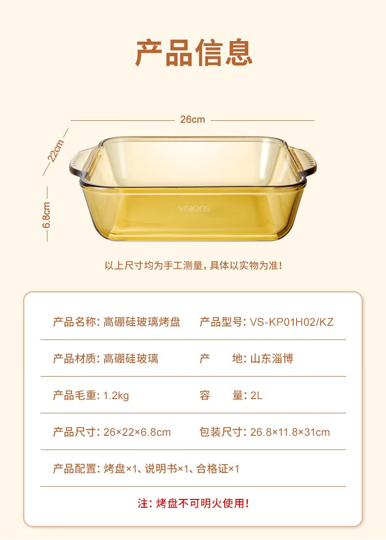康宁 VISIONS高硼硅玻璃烤盘26*22*6.8cm