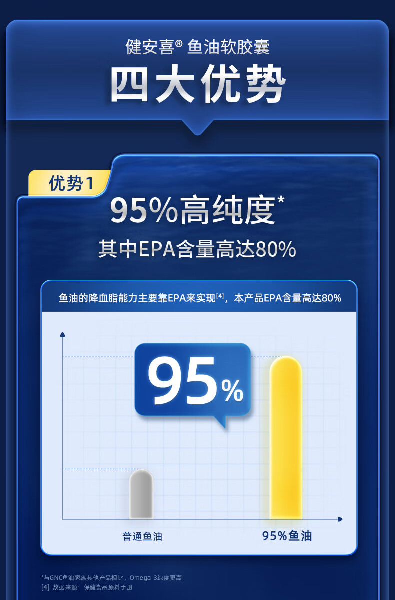 GNC 健安喜 鱼油软胶囊 45g/瓶