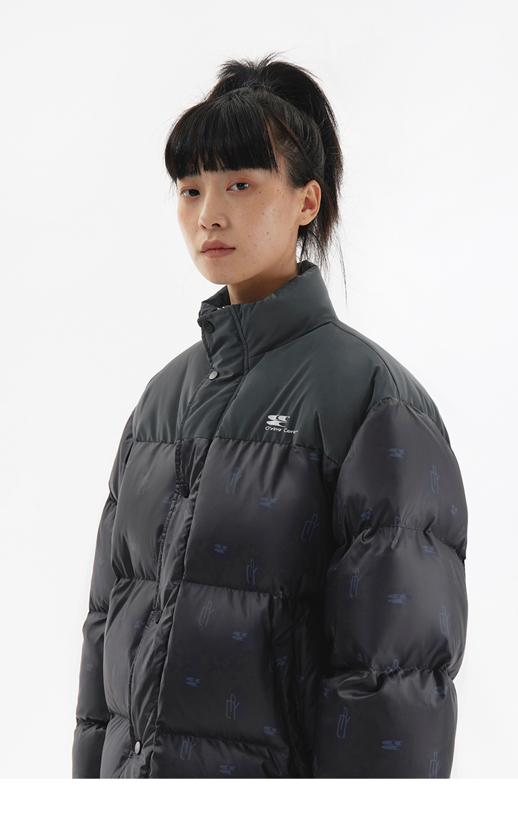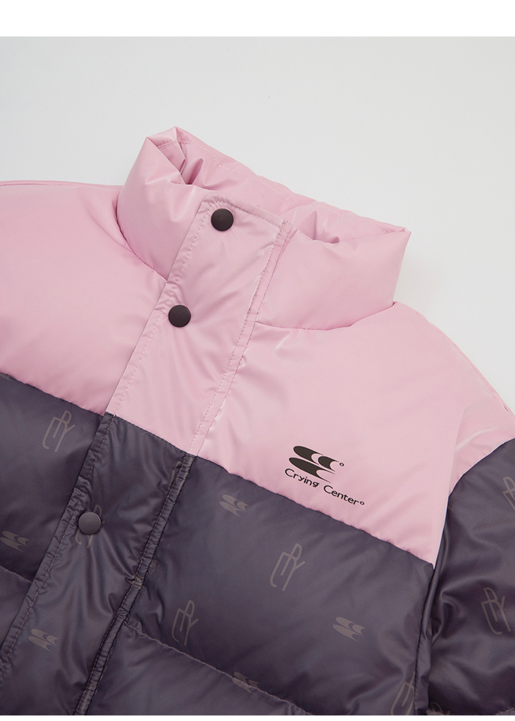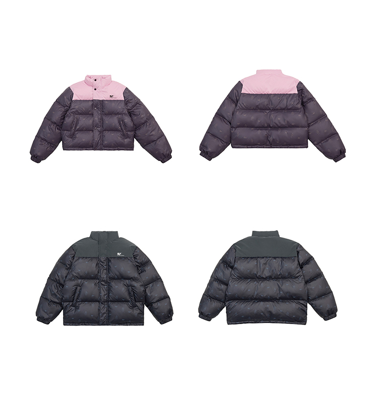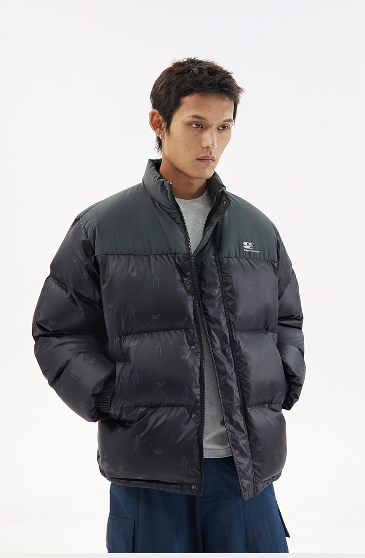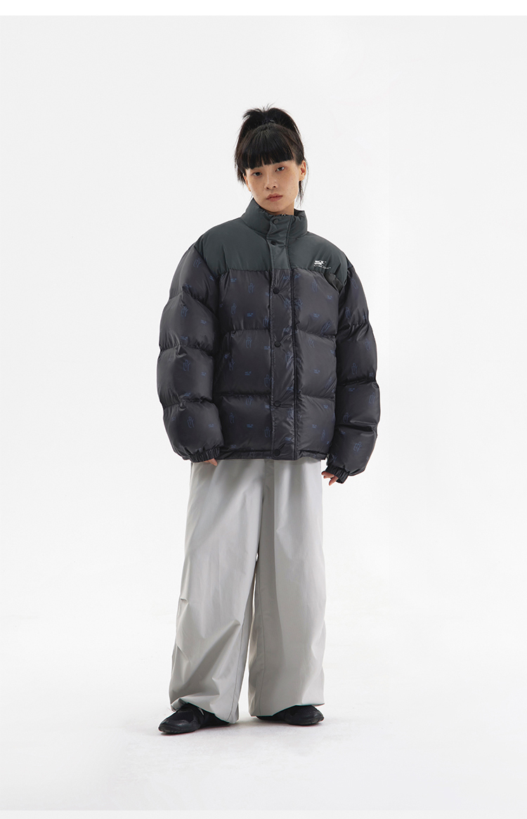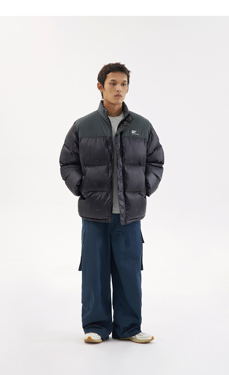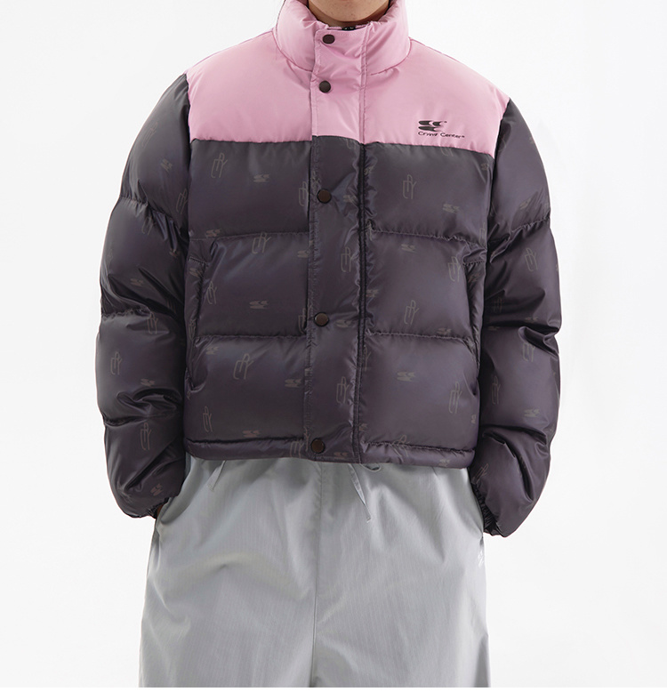 老花拼接撞色立领羽绒服面包服保暖百搭男女同款
