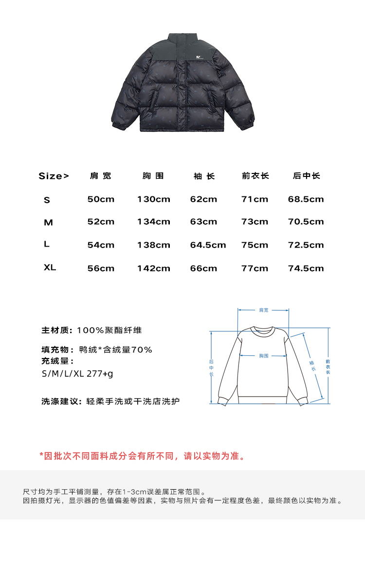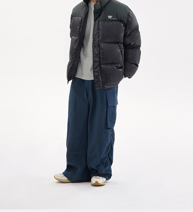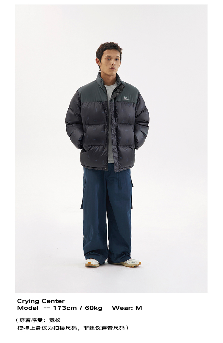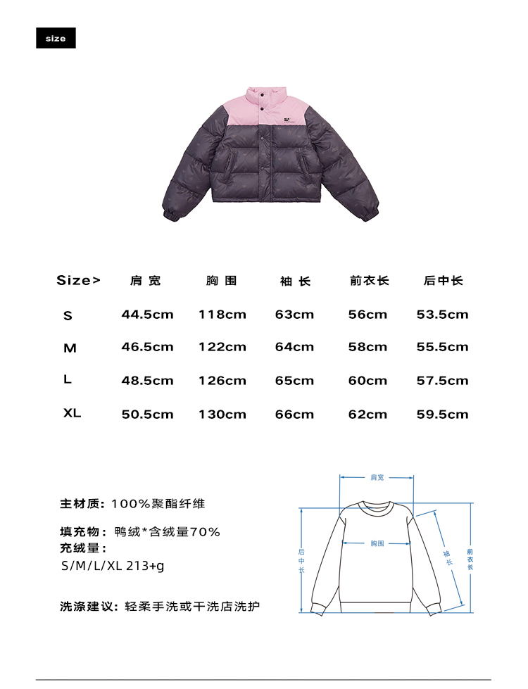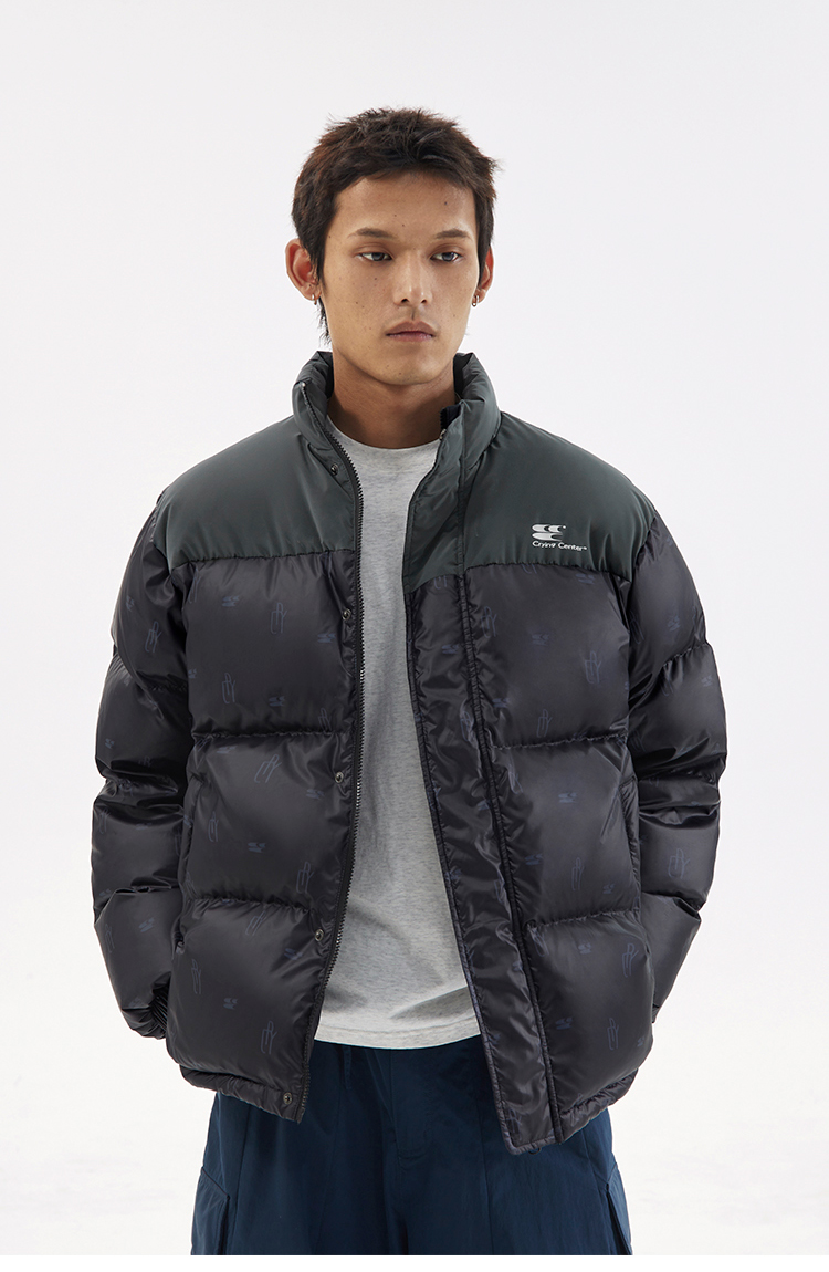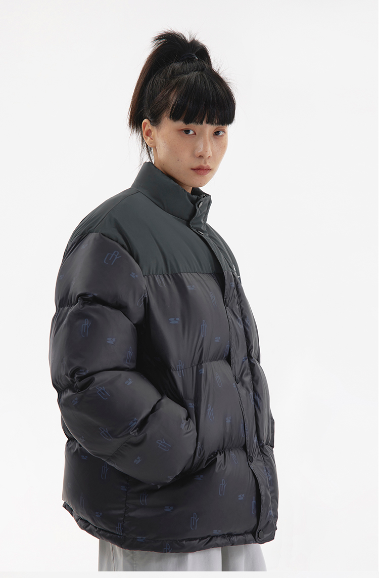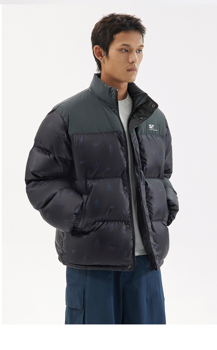 老花拼接撞色立领羽绒服面包服保暖百搭男女同款