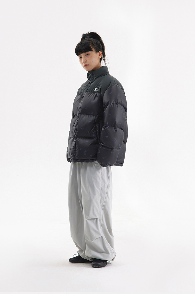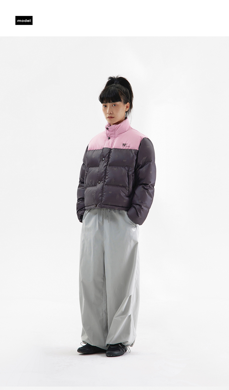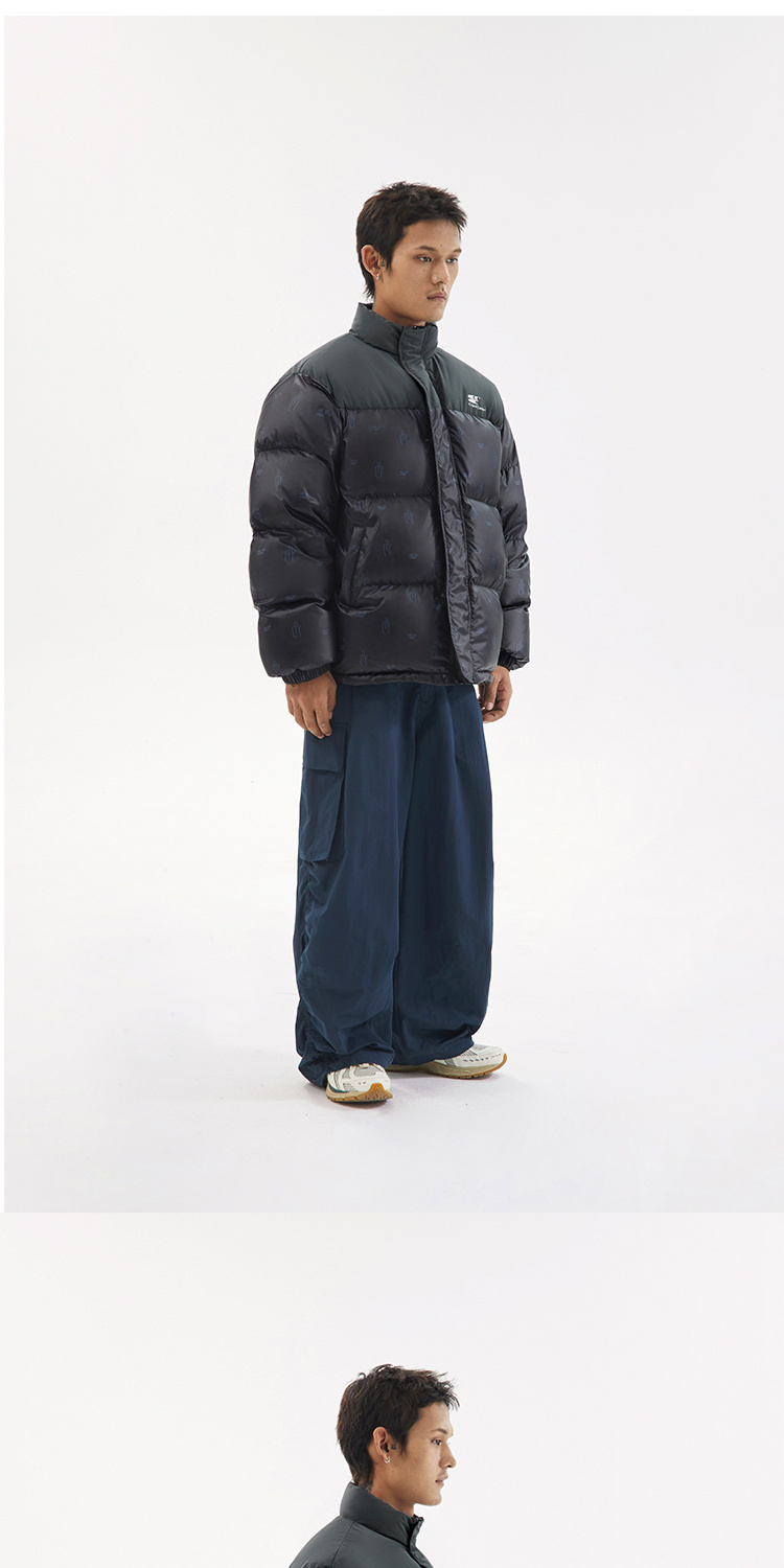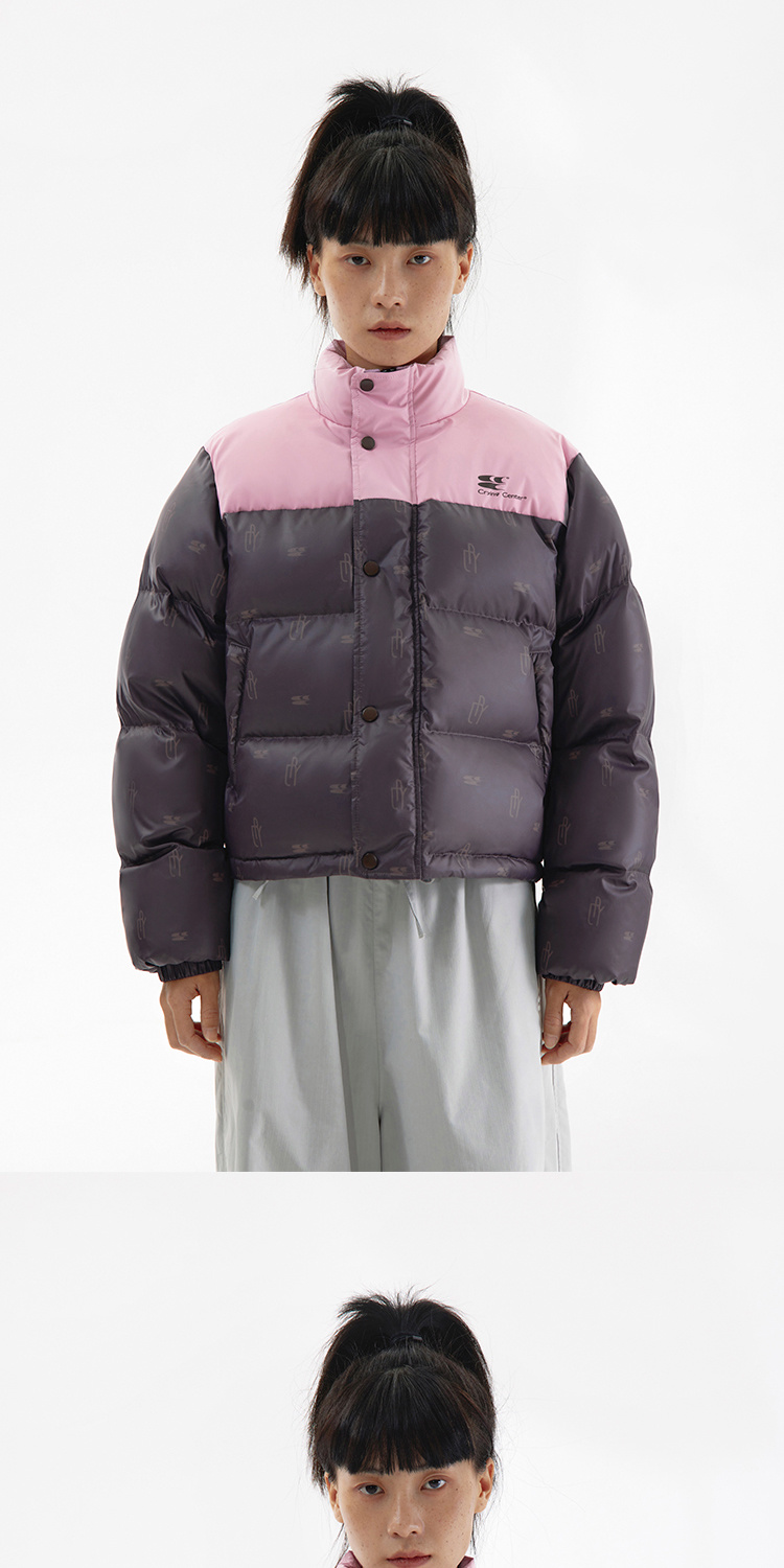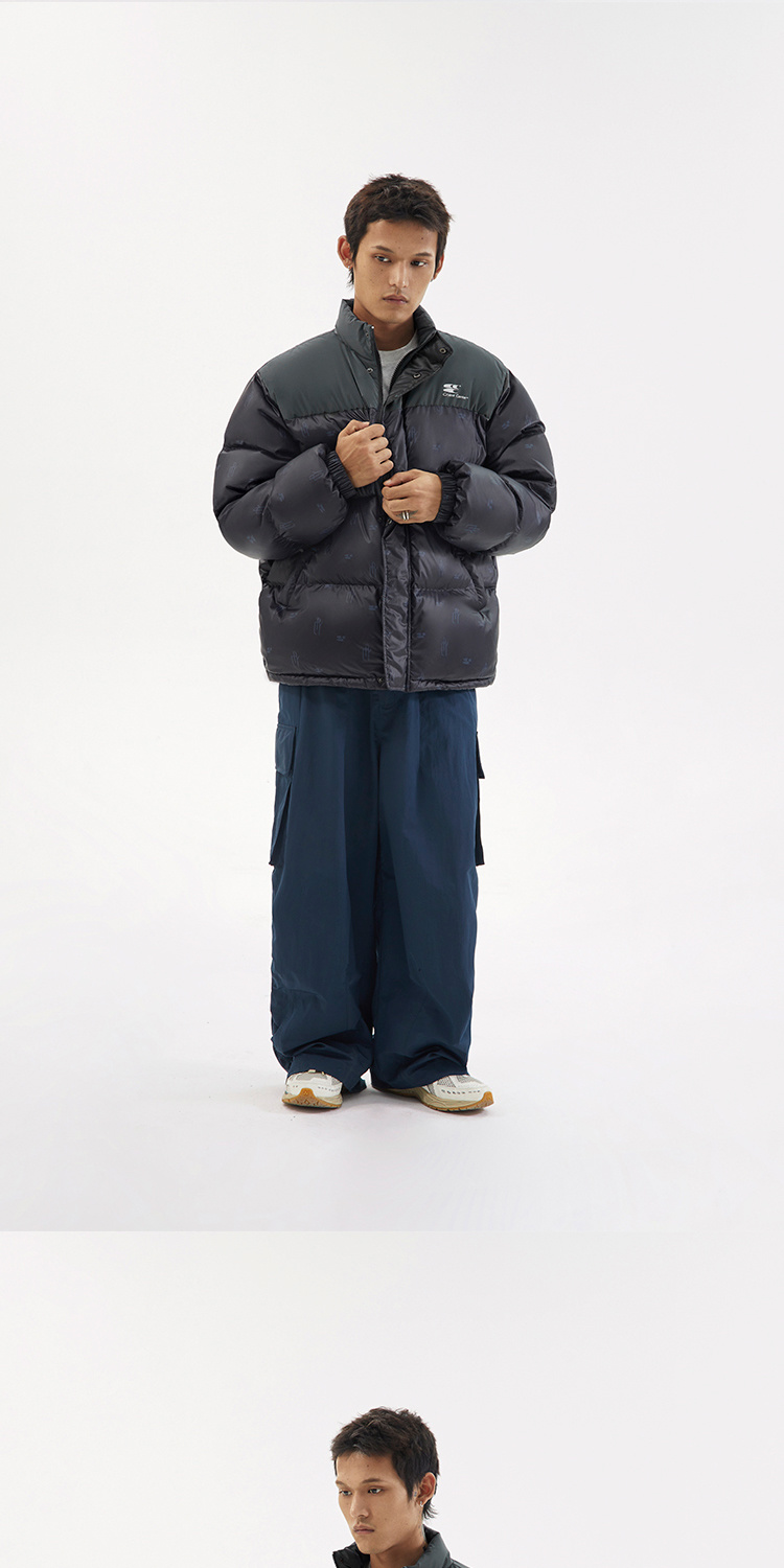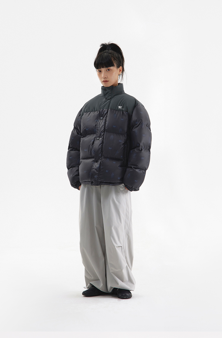 老花拼接撞色立领羽绒服面包服保暖百搭男女同款