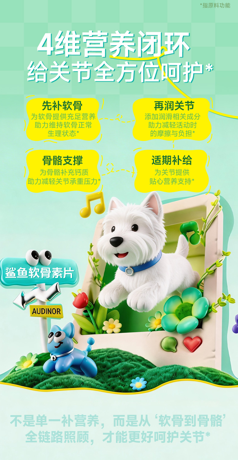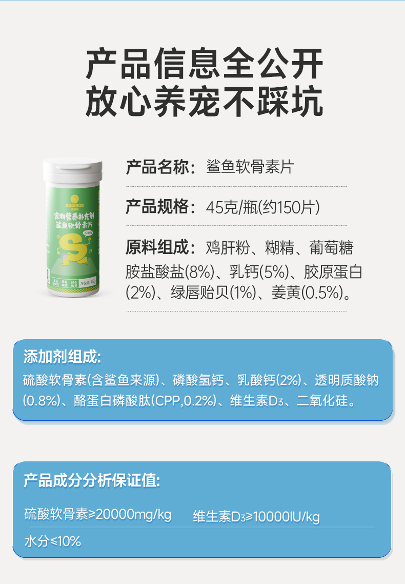 雷米高澳丽得鲨鱼软骨素片护骨关节强化骨骼营养补钙补软骨硬骨犬猫通用