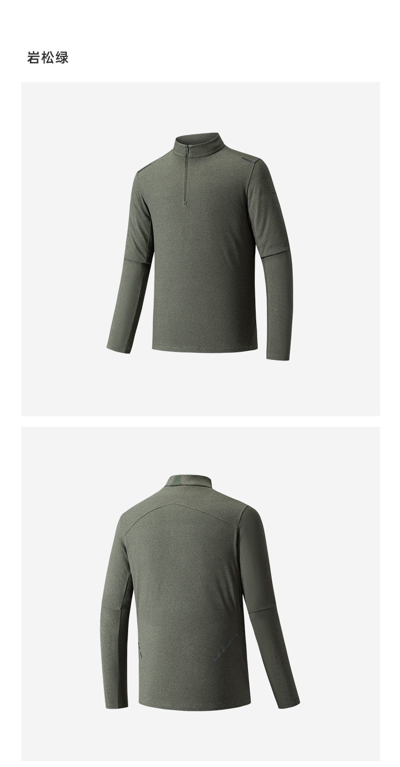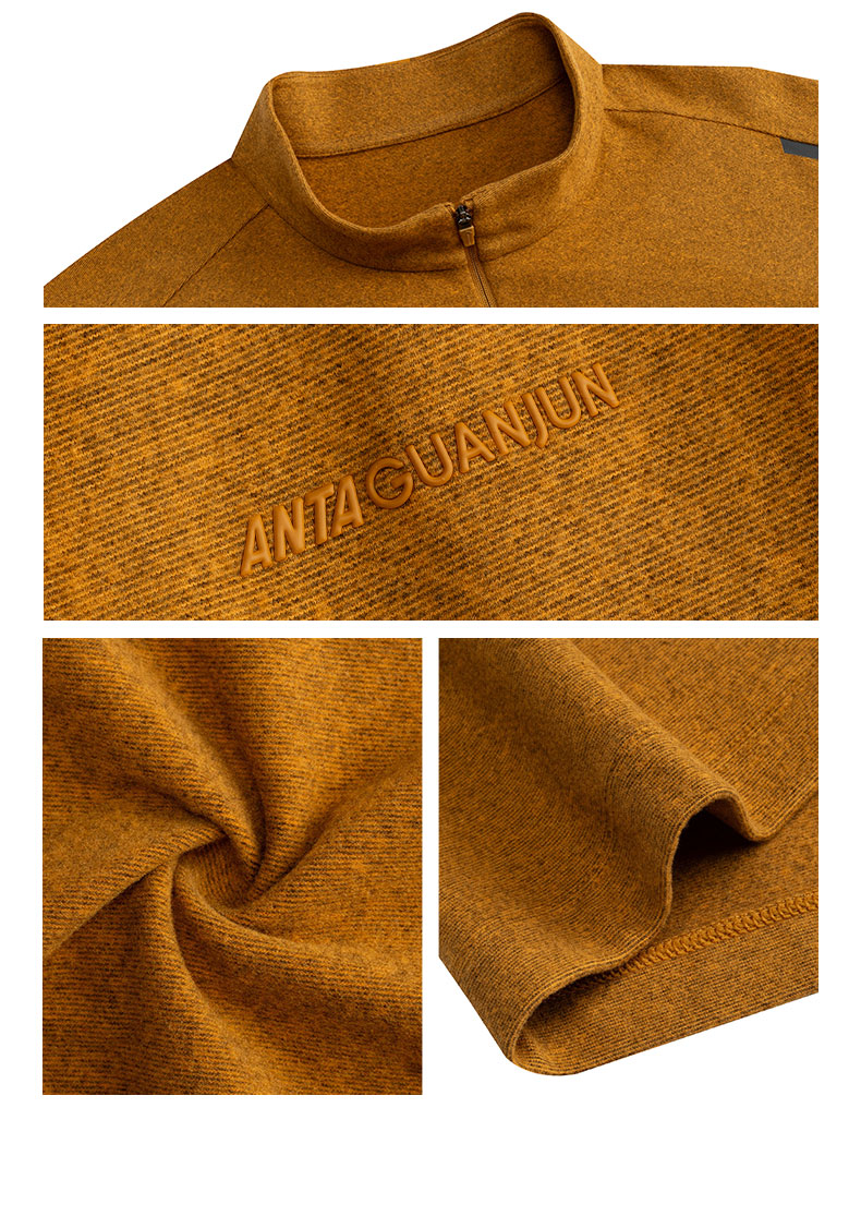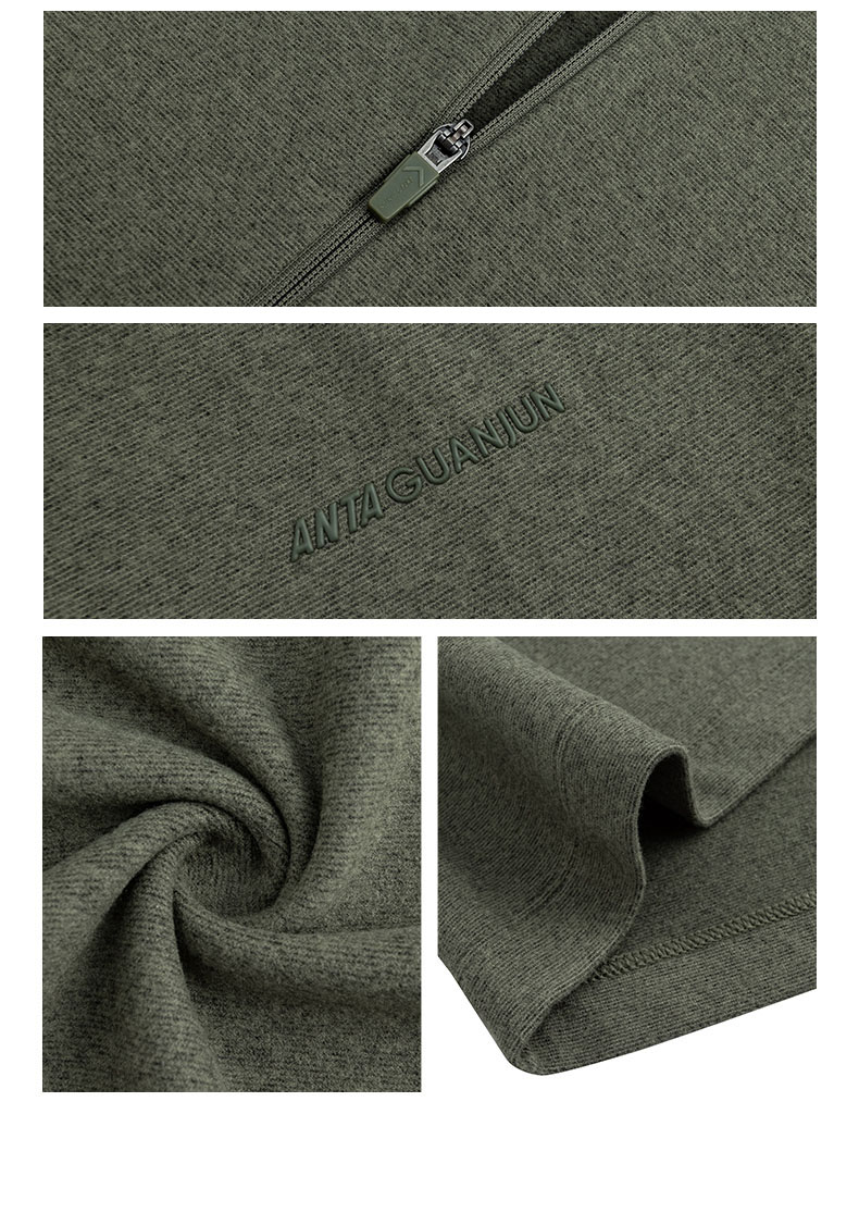 安踏冠军户外徒步系列密暖绒长袖T男冬季磨毛半拉链T恤152540404