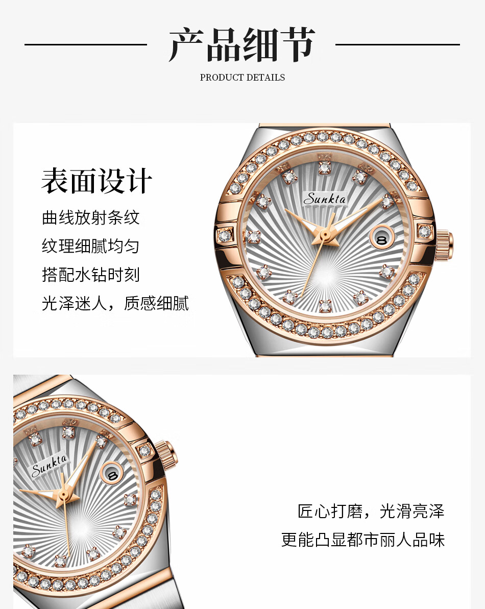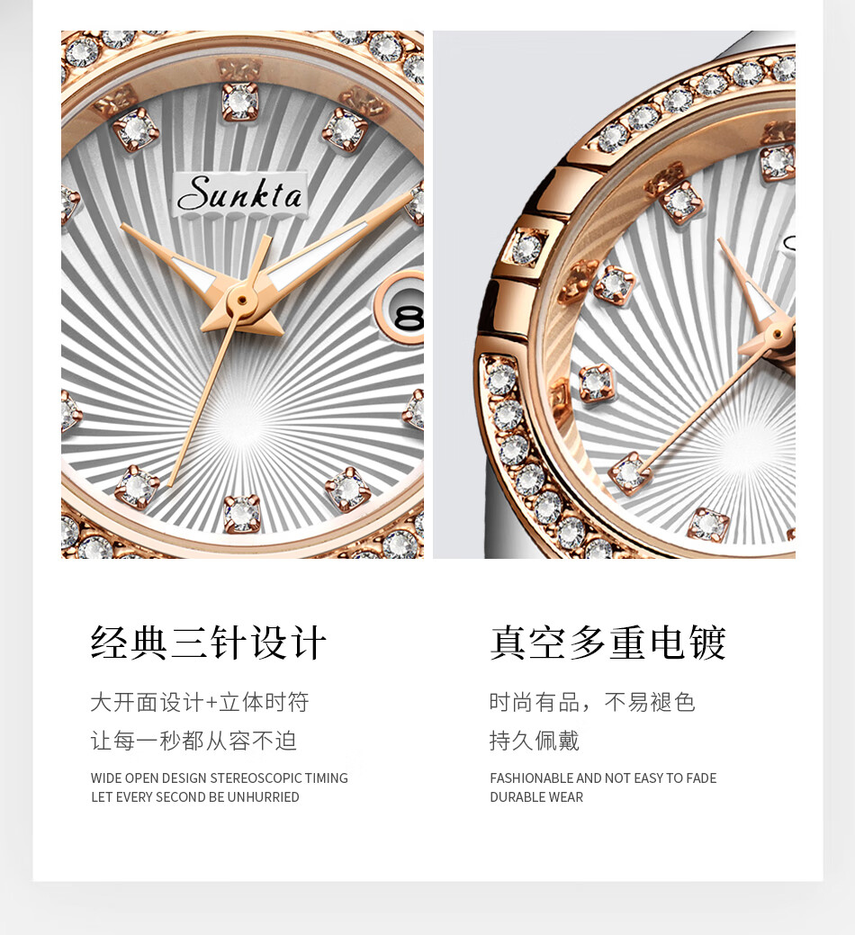 SUNKTA 轻奢英伦风简约日历石英表ST6715