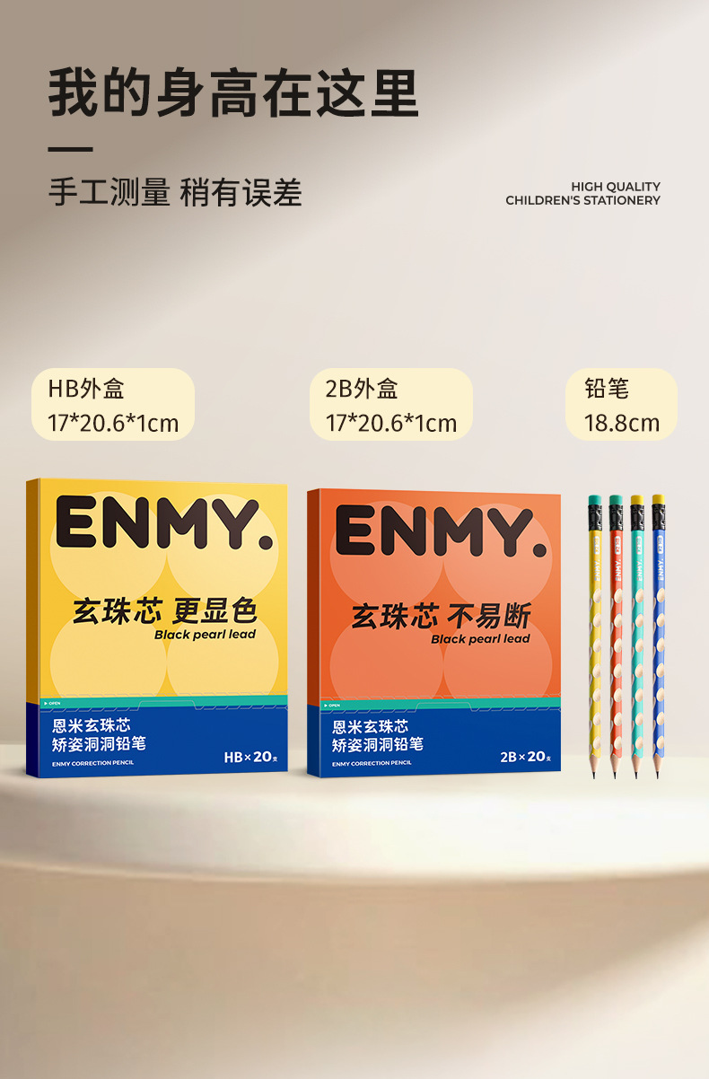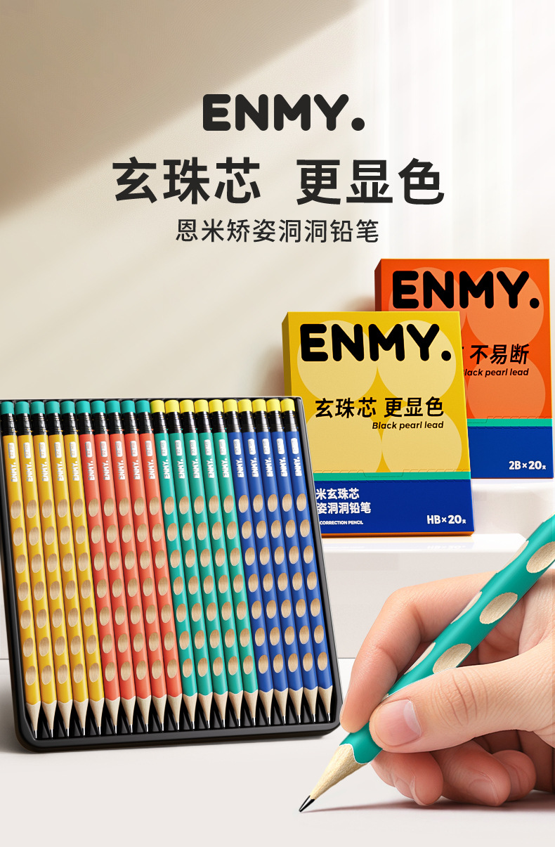 严选 | ENMY恩米玄珠芯矫姿洞洞铅笔20支盒装 正姿握笔四合一 学生木杆铅笔不易断儿童铅笔