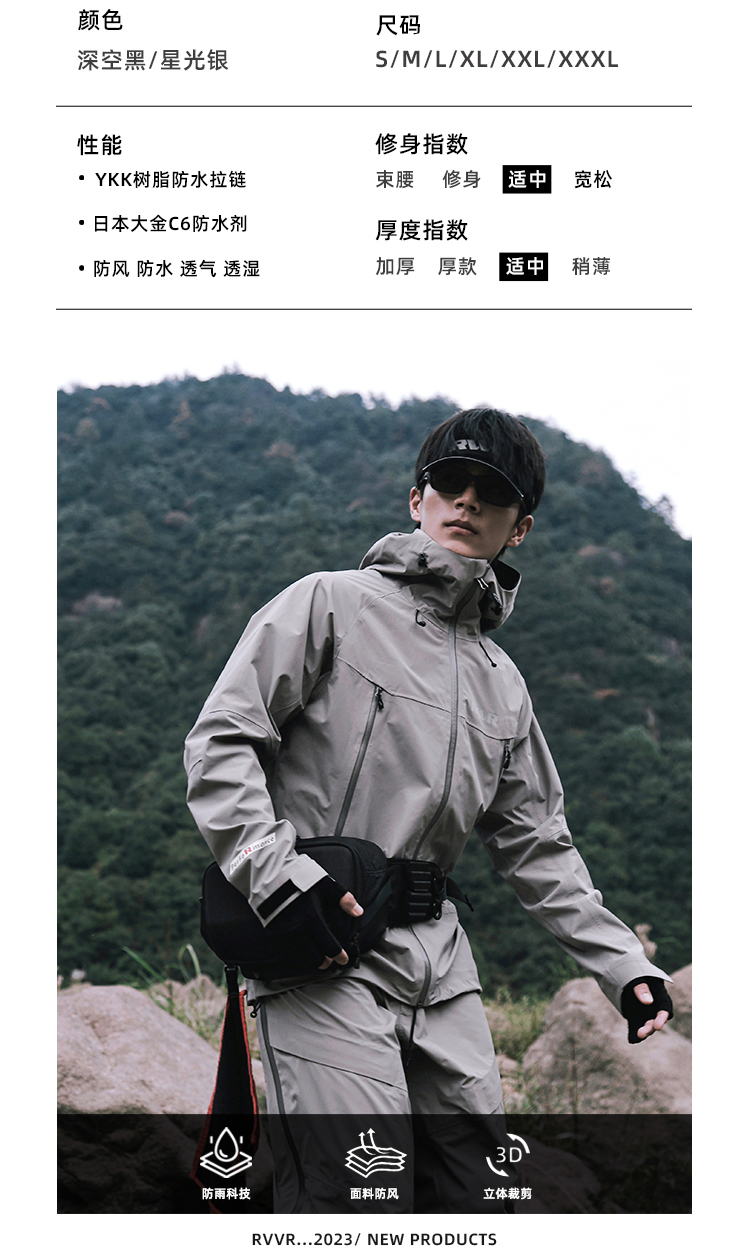 23新款RVVR硬壳冲锋衣冲锋裤户外运动套装外套钓鱼服防风防雨防水