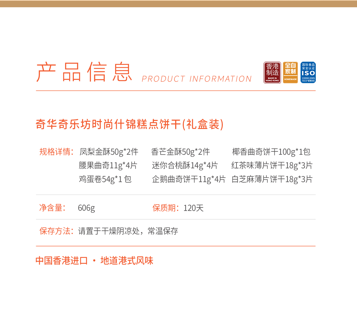 【奇乐坊时尚礼盒】蛋卷凤梨酥曲奇进口零食糕点礼盒送礼中国香港