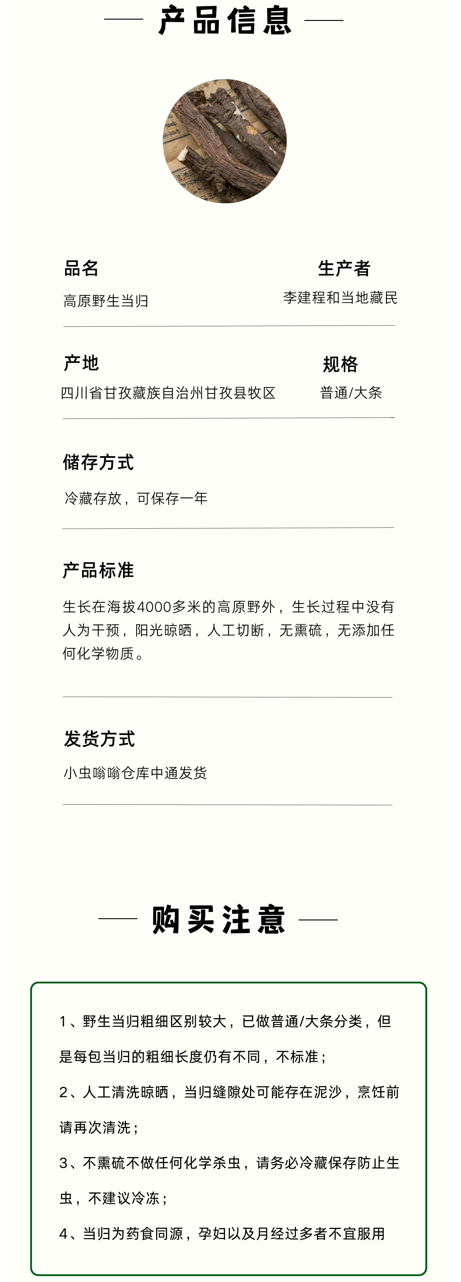 高原野生当归 普通/大条 | 合作农友生产,产自四川甘孜雪山高原,生产者:李建程 &【公平贸易农人定价】