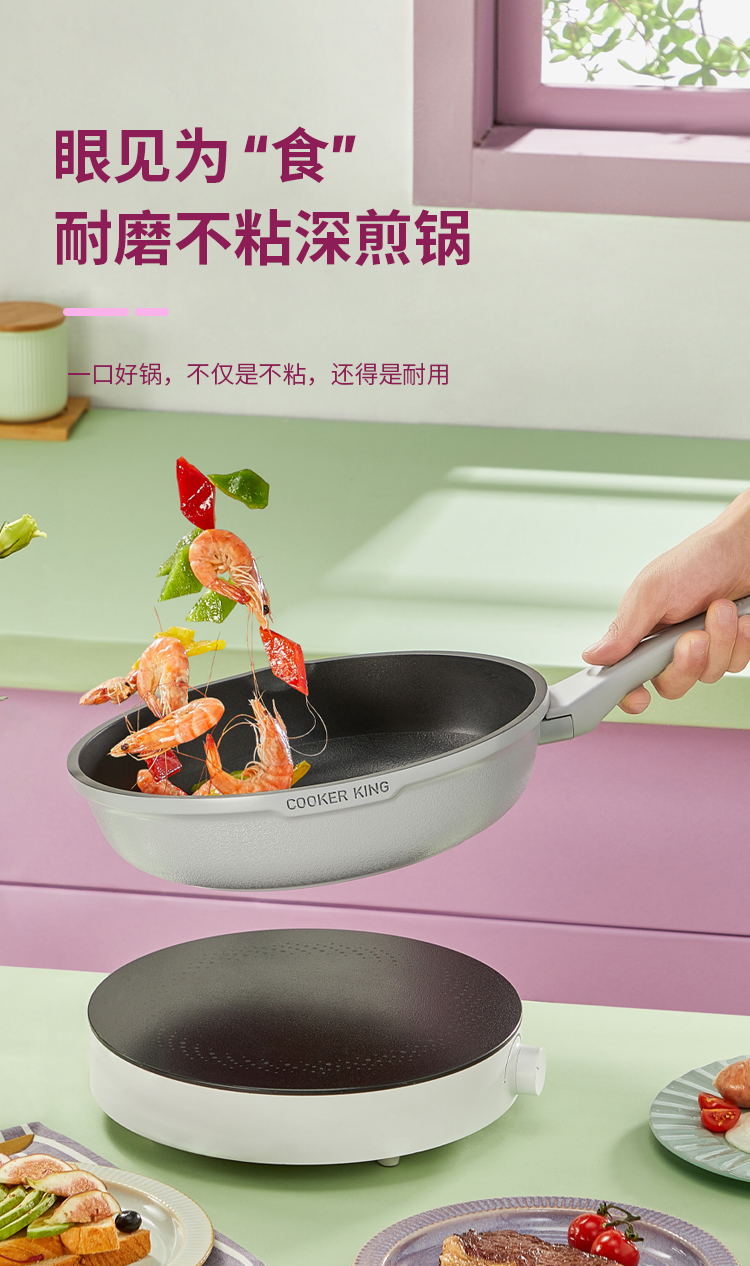 炊大皇 魅尚系列铝合金深煎锅28cm 灰珍珠色BZ50847