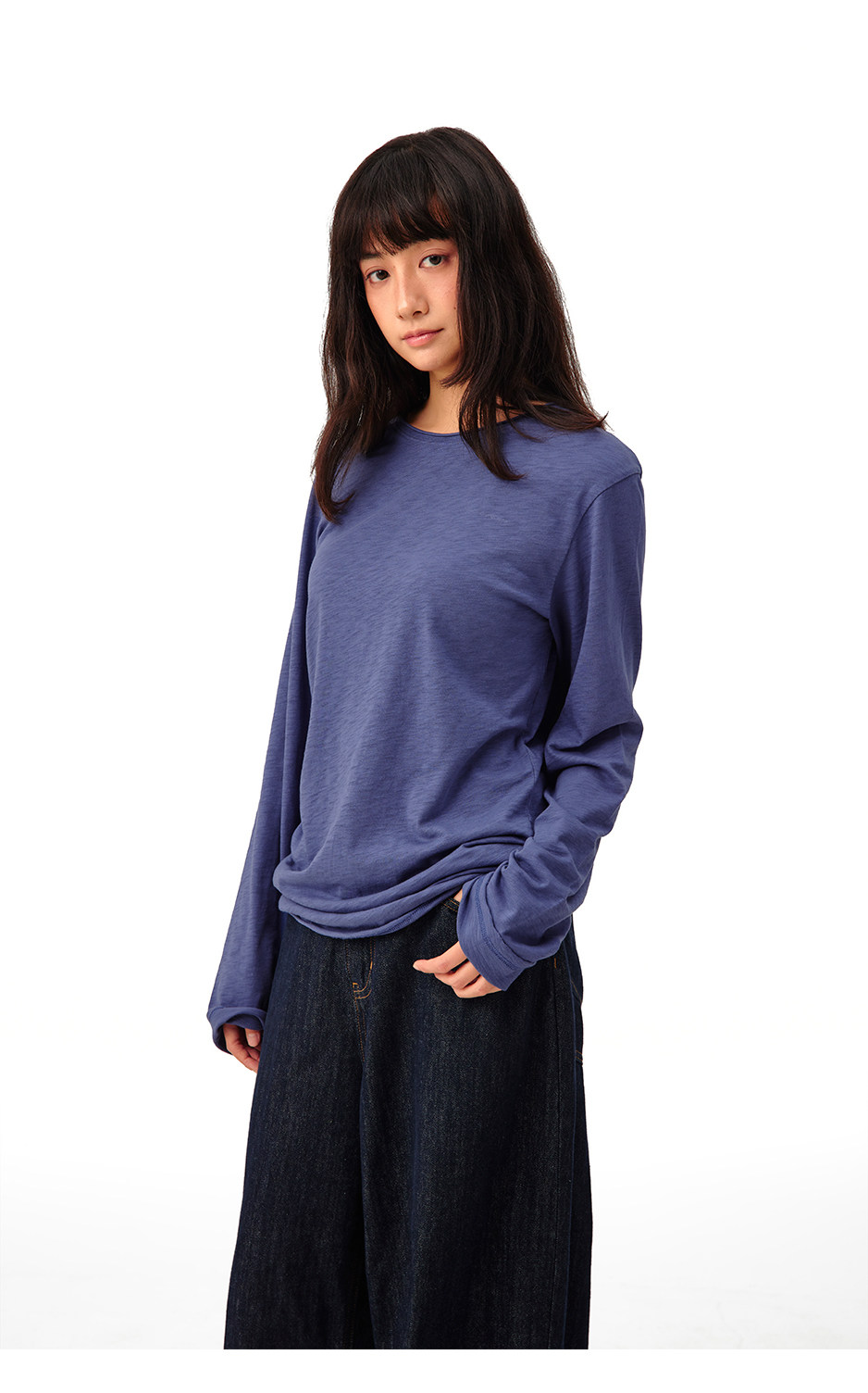 CryingCenter 竹节棉卷边堆量圆领长袖tee 哭喊中心
