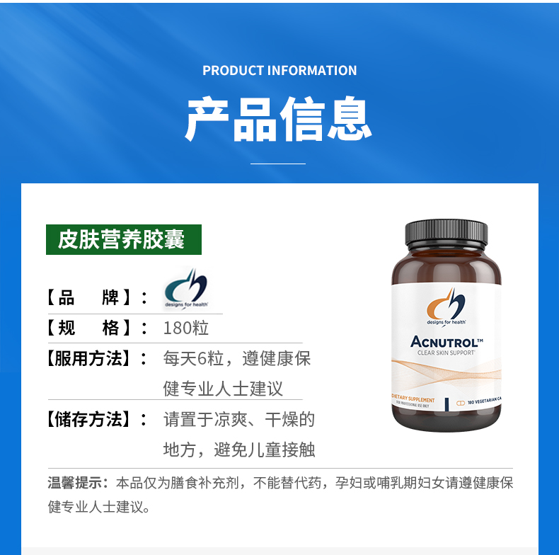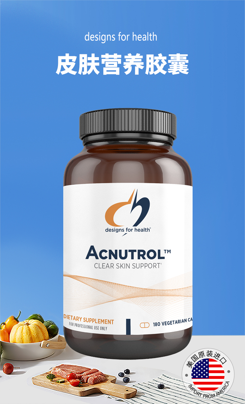 【效期至27年7月】皮肤营养胶囊 design for health Acnutrol™ caps 180粒/瓶