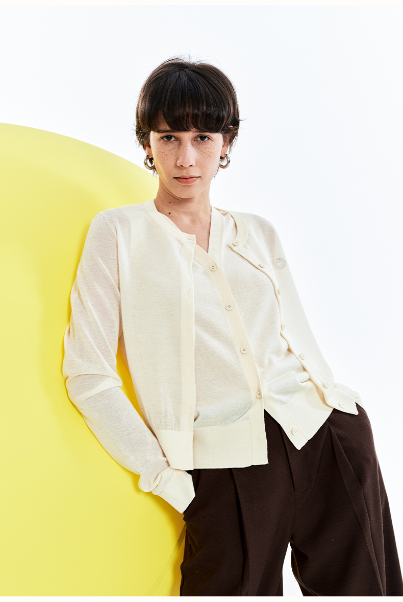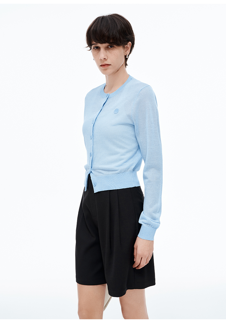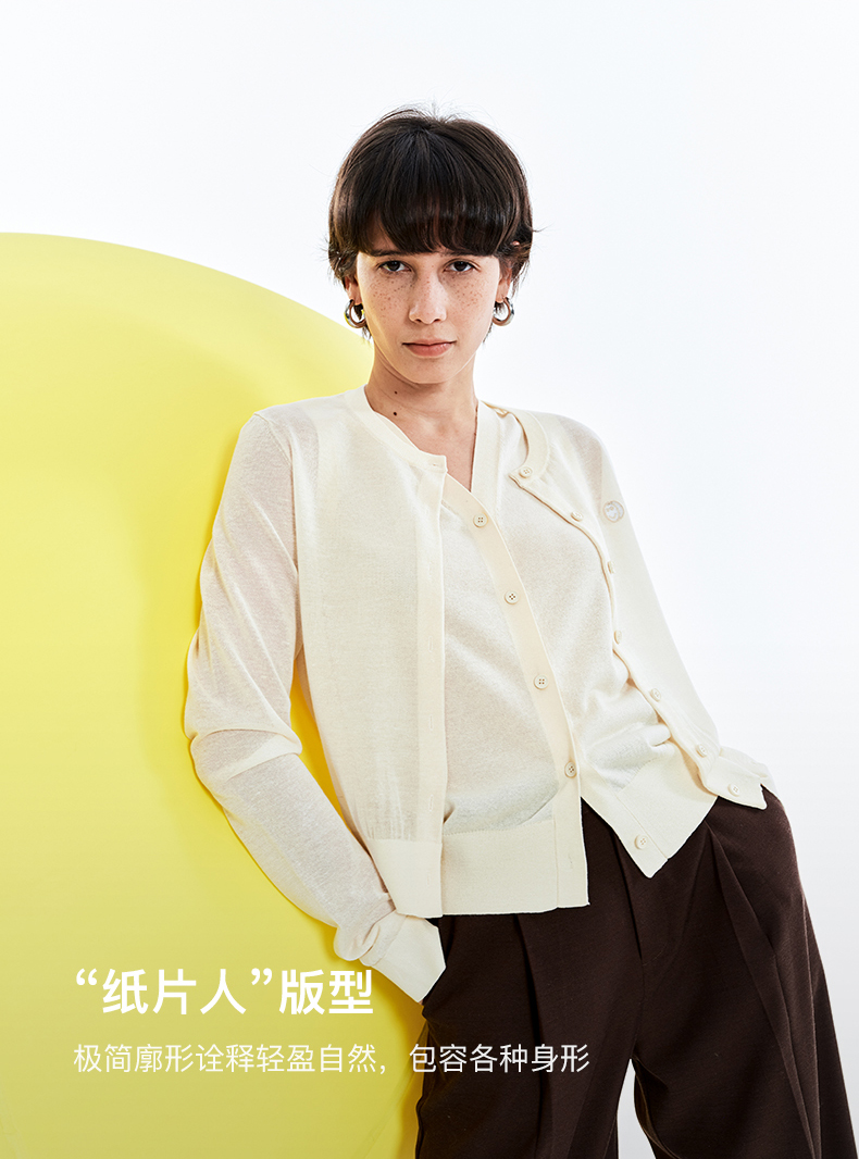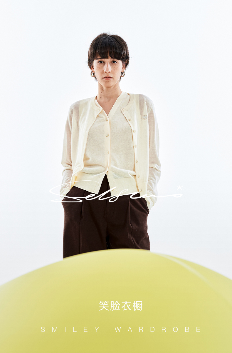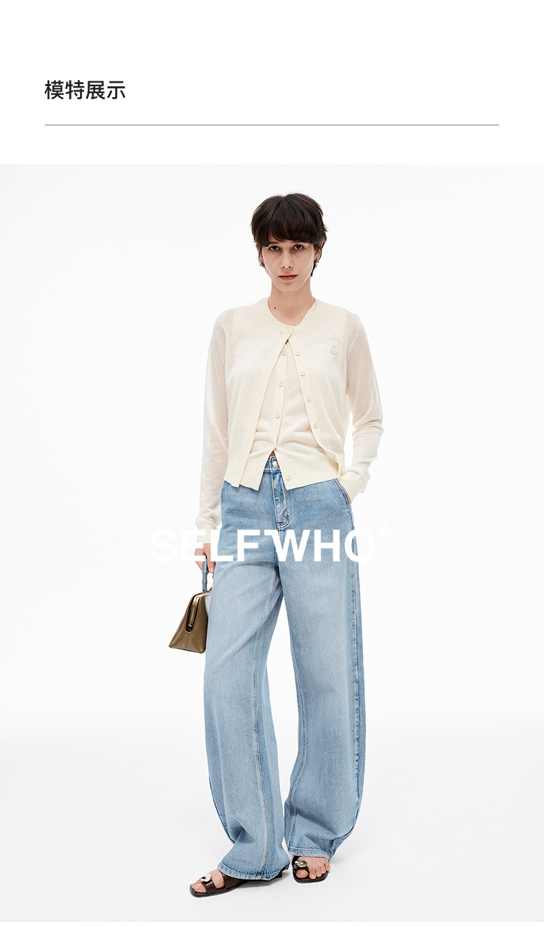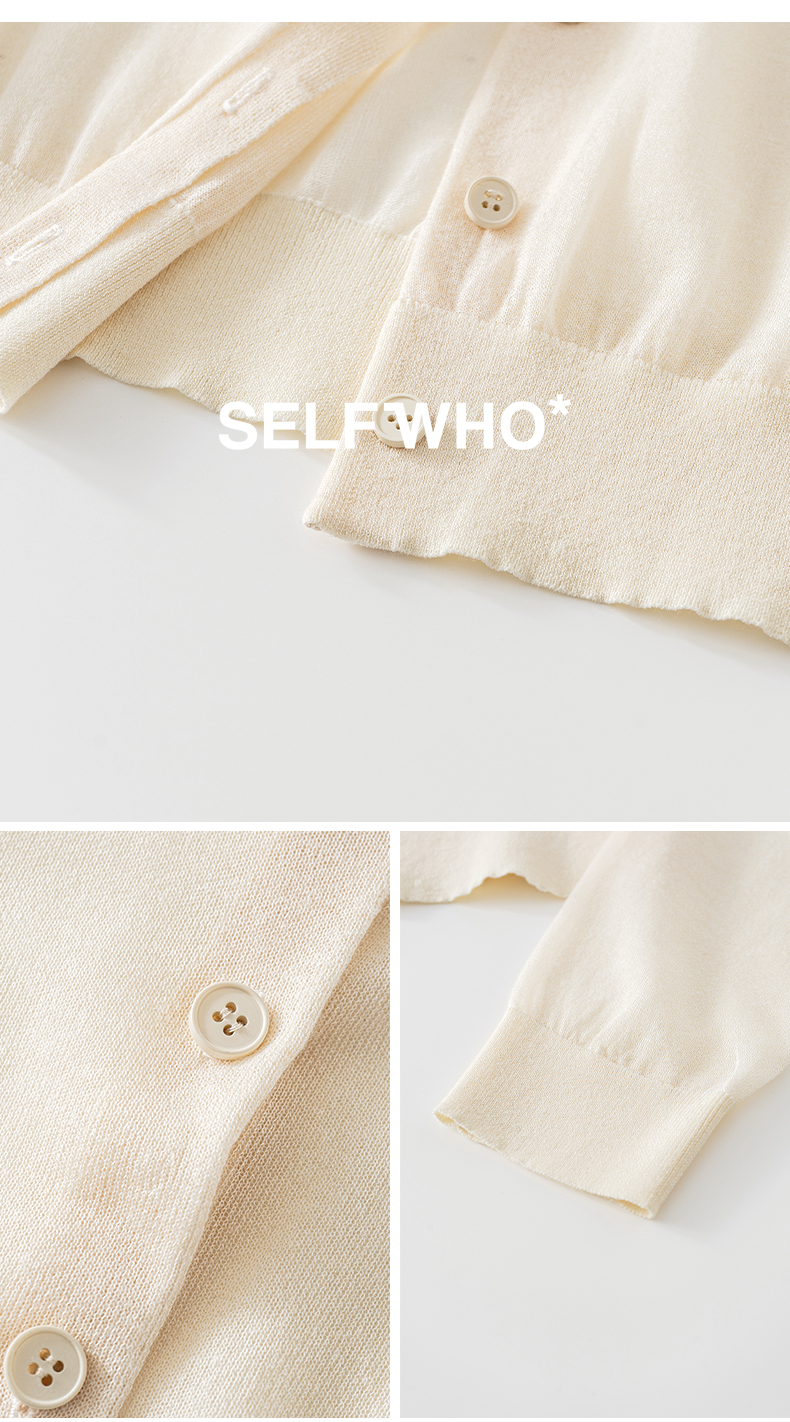 【笑脸衣橱】SELFWHO亚麻混纺圆弧领针织开衫女2025夏薄款透气纸片人毛衣外套